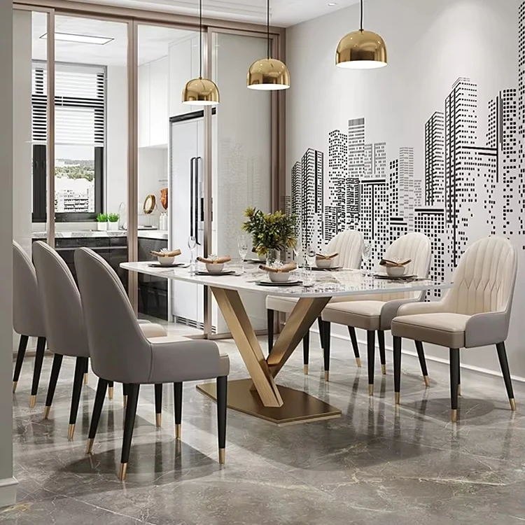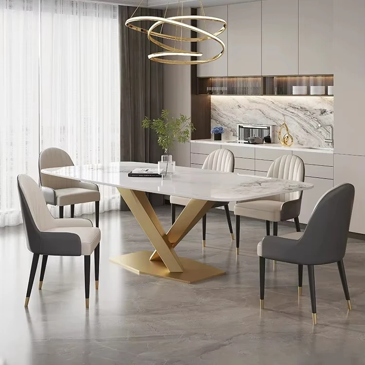 Product Name | Hot Sale New Luxury Modern Home Furniture Dinning Table Set For 6 Dining Room Rock Slab Table Gold Metal Base Customised Color |