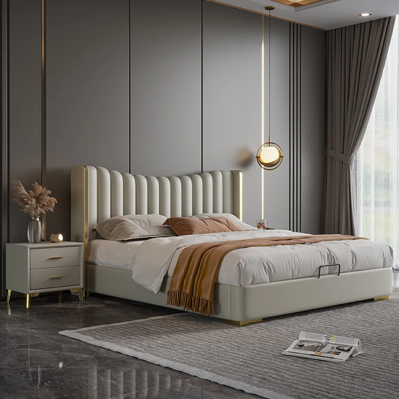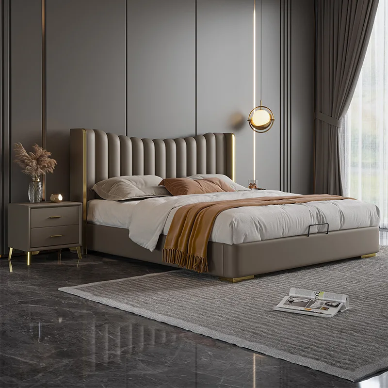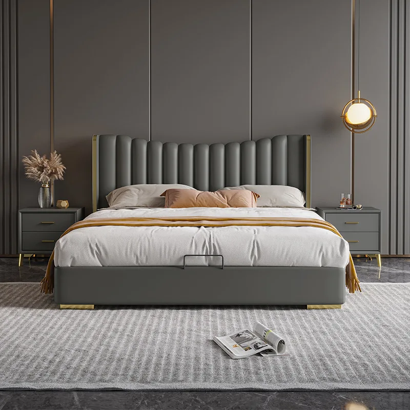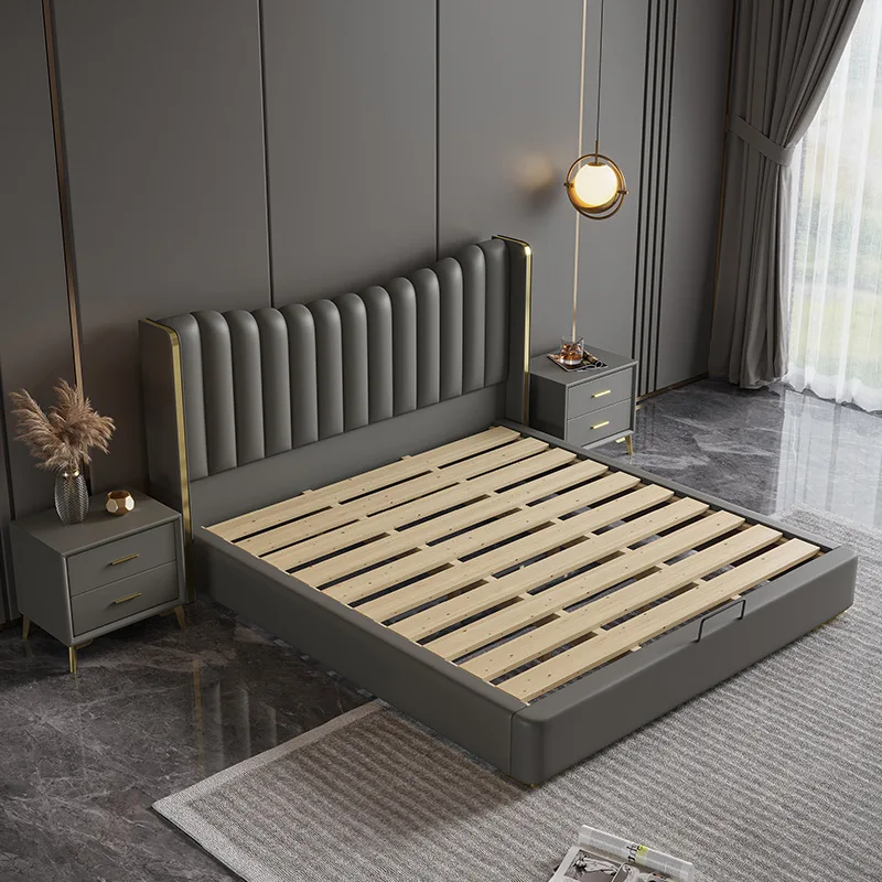 Storage King Queen Size Wooden Bed Upholstery Bedroom Set Double Wood storage Leather Bed Frame for Hotel
