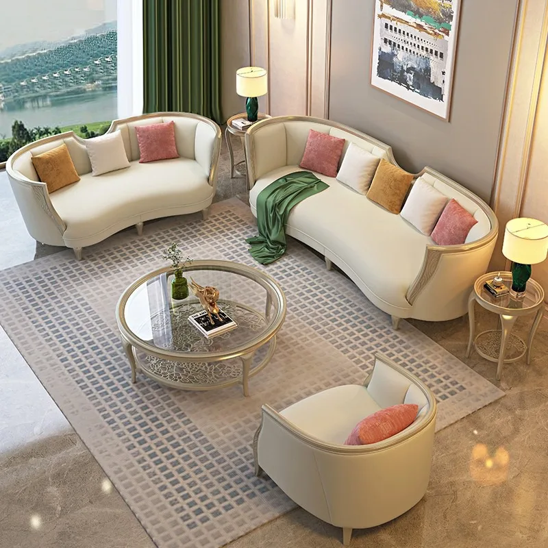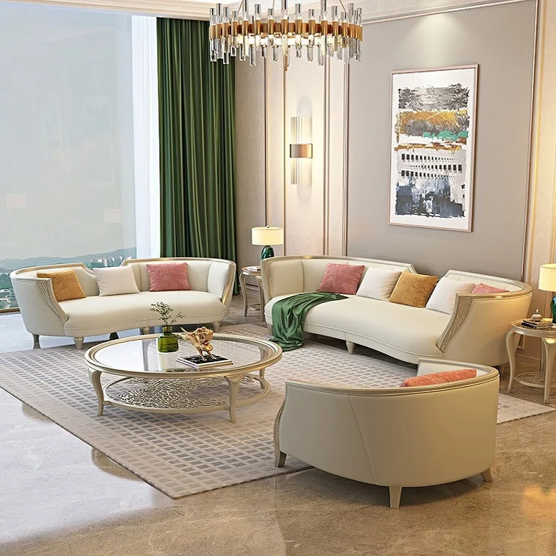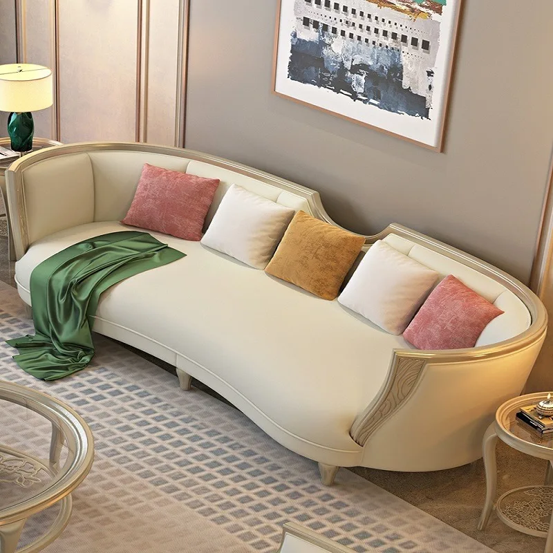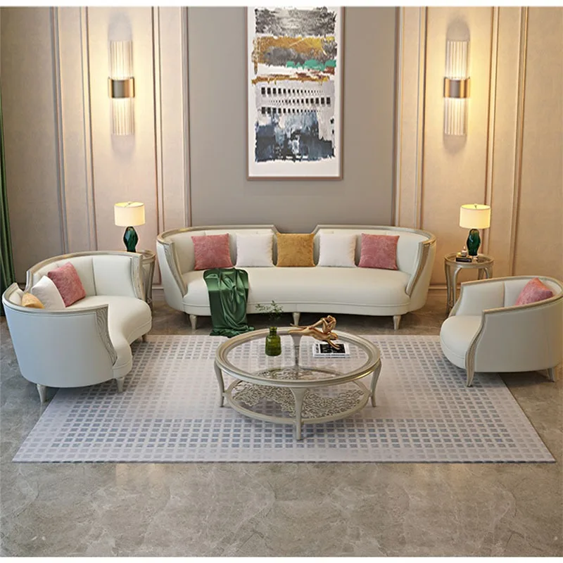 American Solid Wood 123 Combination Large White Velvet Couch Sofa Italian Fabric Sofa Leather Living Room Furniture