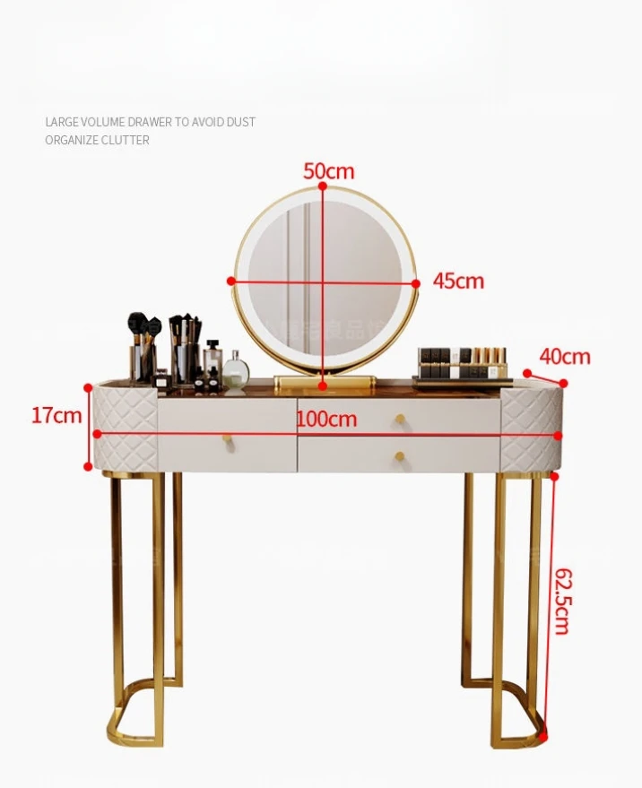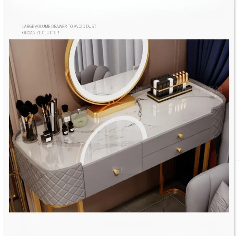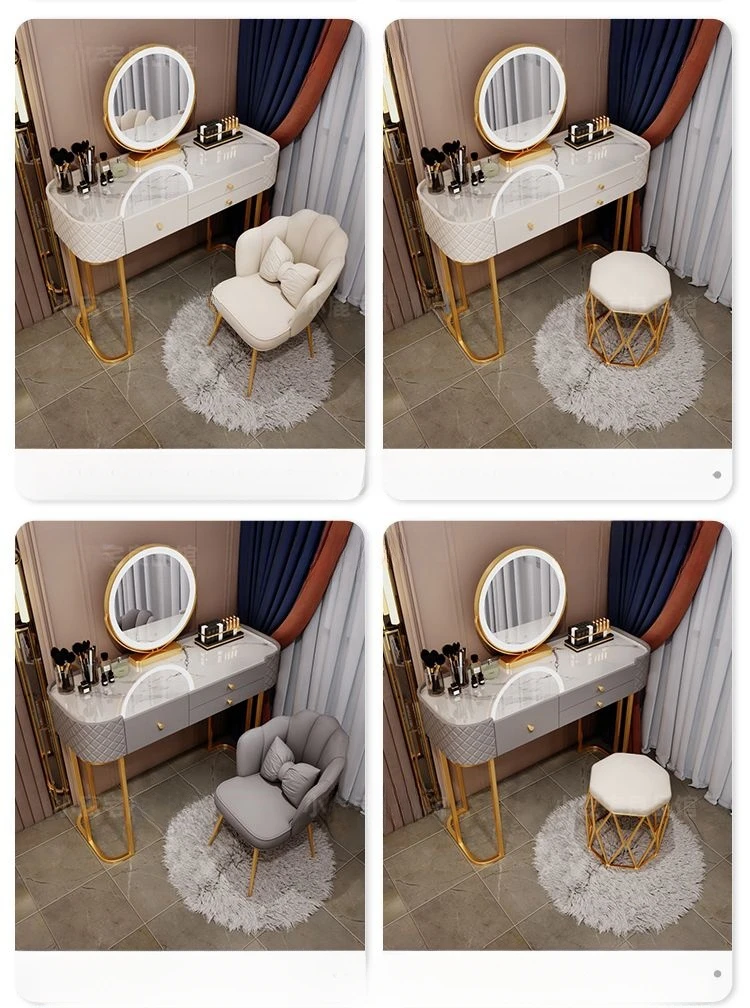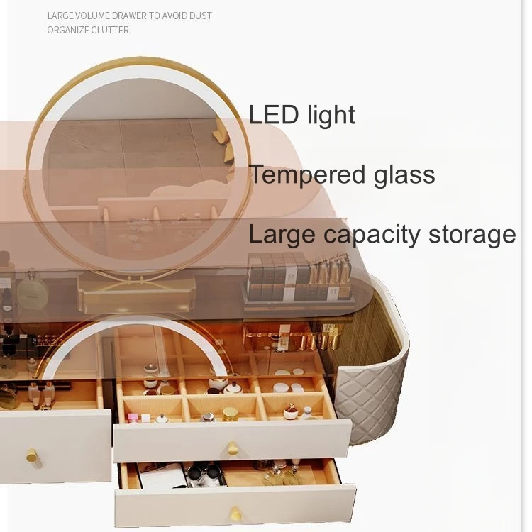 JFZL11 Bedroom Furniture Modern Dressing Table Bedroom Tempered glass Tabletop Cream Led Mirror Vanity Make Up Dressing Table