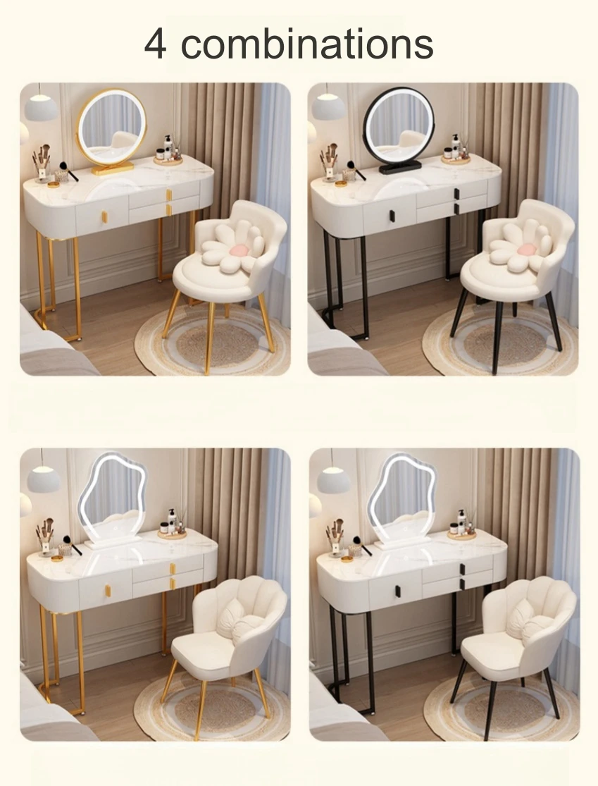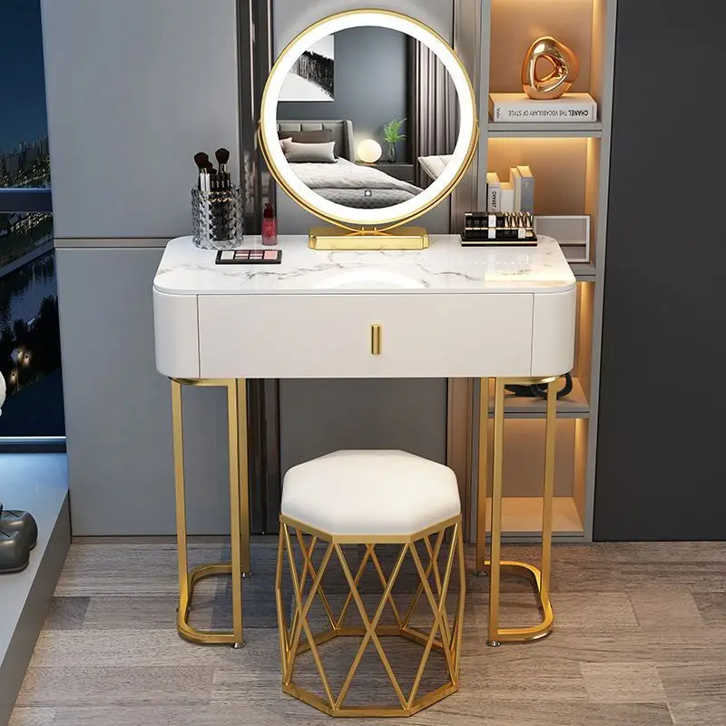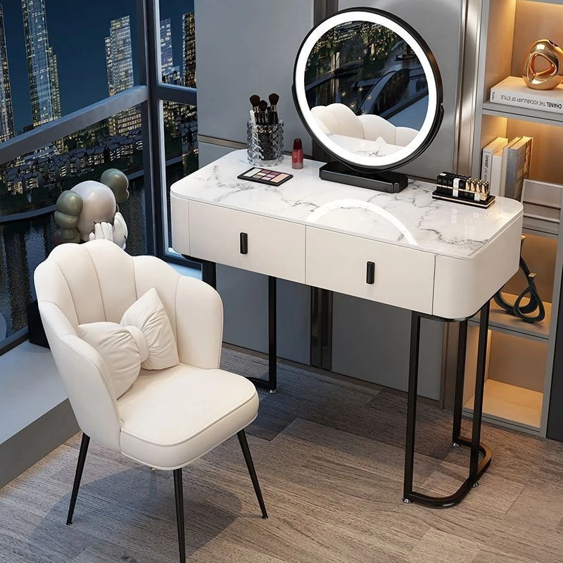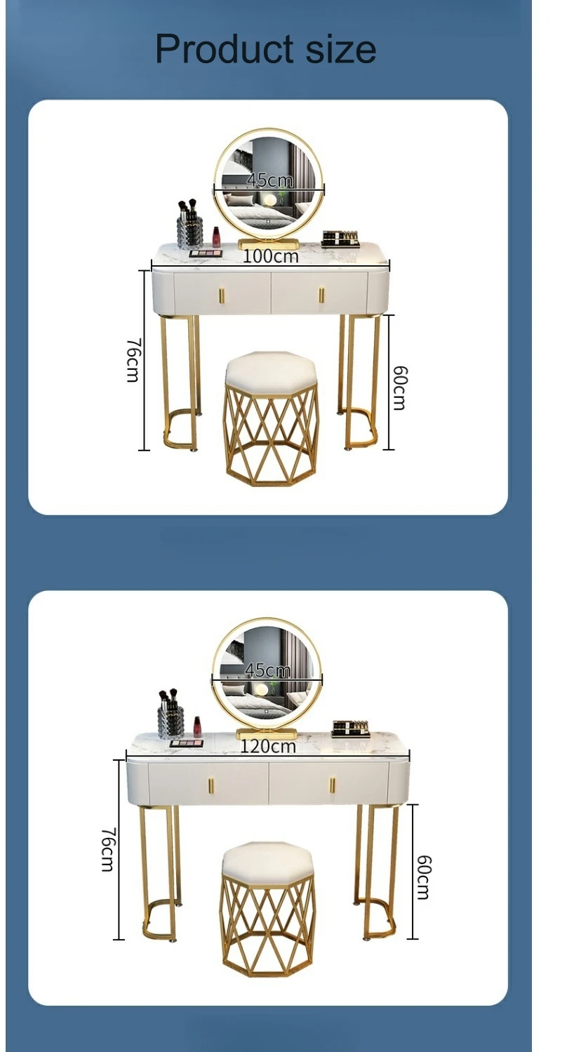 JF-A02 Bedroom Furniture Luxury Modern Dressing Table Bedroom Rock PlateTabletop Cream Led Mirror Vanity Make Up Dressing Table