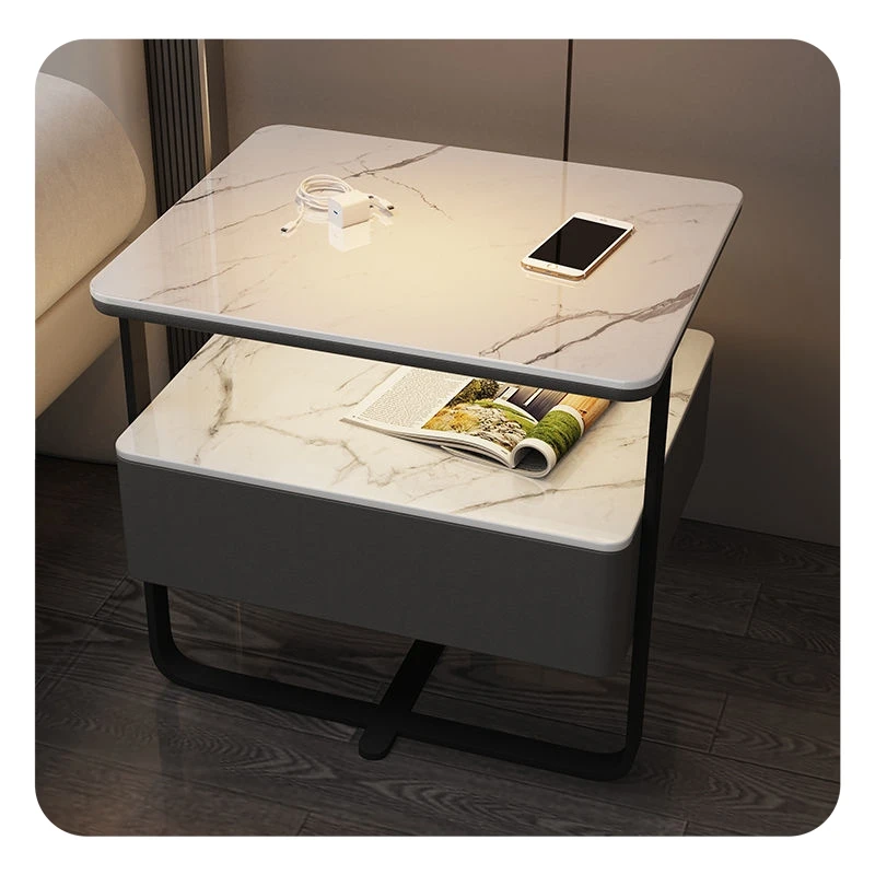 Factory wholesale nightstand modern simple light luxury strict solid wood locker bedroom rock panel bed side cabinet two drawers