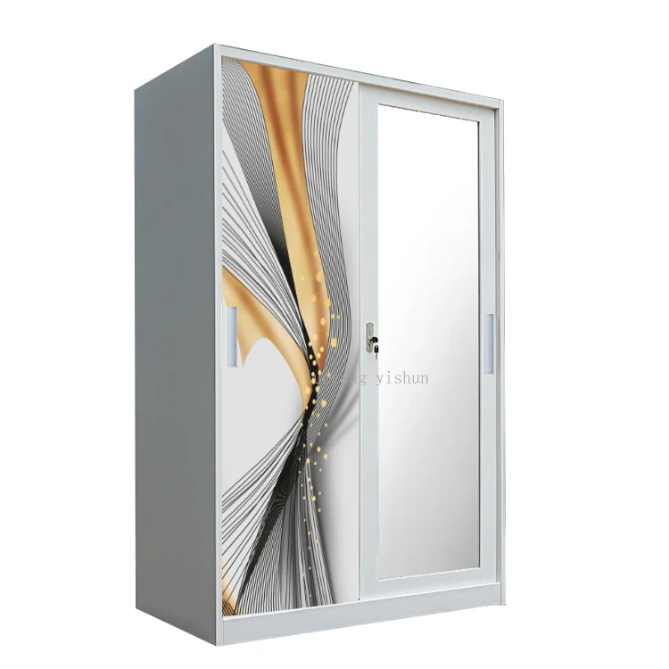 Sliding wardrobe steel bedroom wardrobe design 2 door metal wardrobe closet geser Lemari Besi