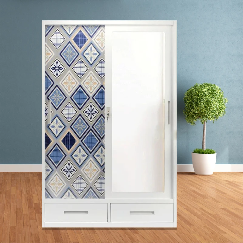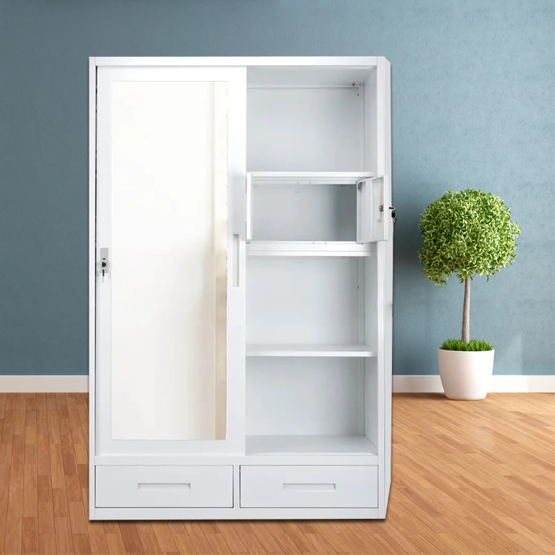 Metal wardrobe 2 doors fireproof locker with mirror iron storage Lemari Pakaian Besi steel wardrobe