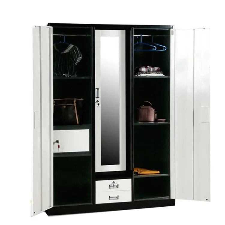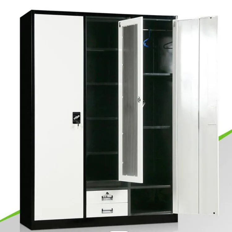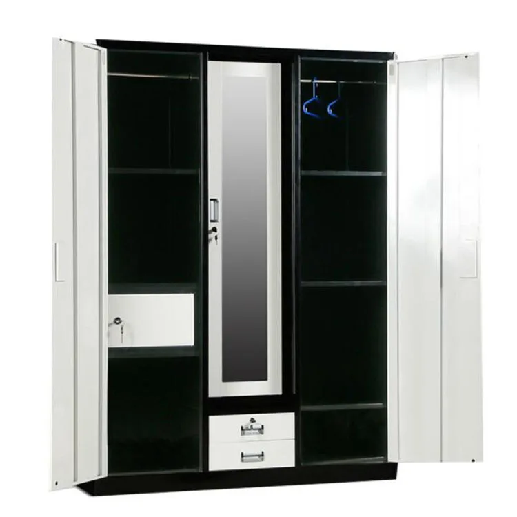 Steel 3 door cheap modern iron wardrobe metal metallic closet wardrobe steel wardrobes malaysia almari bedroom furniture
