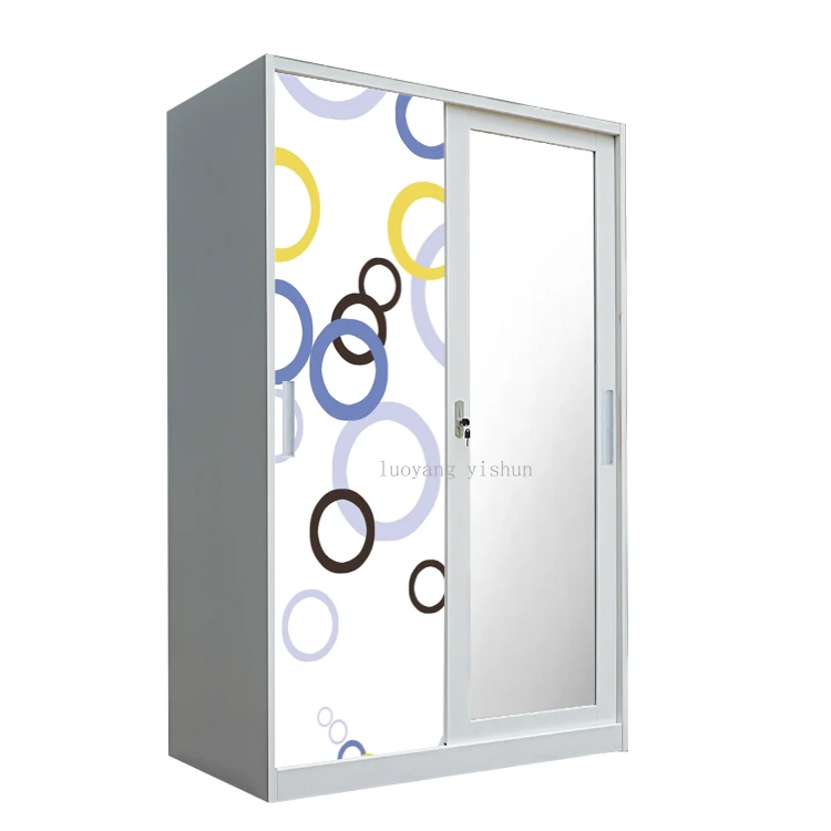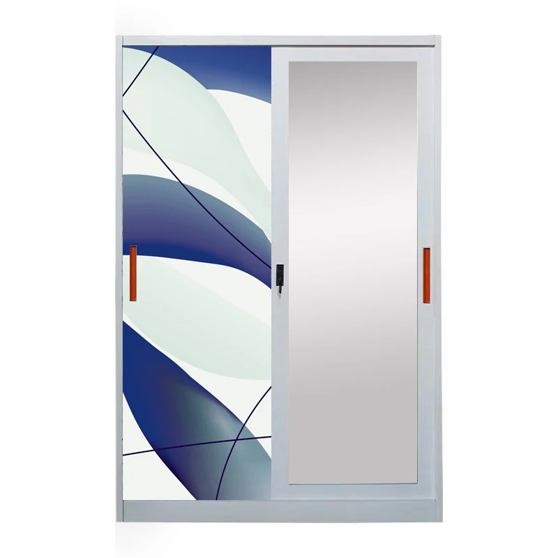 Factory 2023 modern design metal printed china steel lemari hanging cloth design steel almirah 2 swing door wardrobe