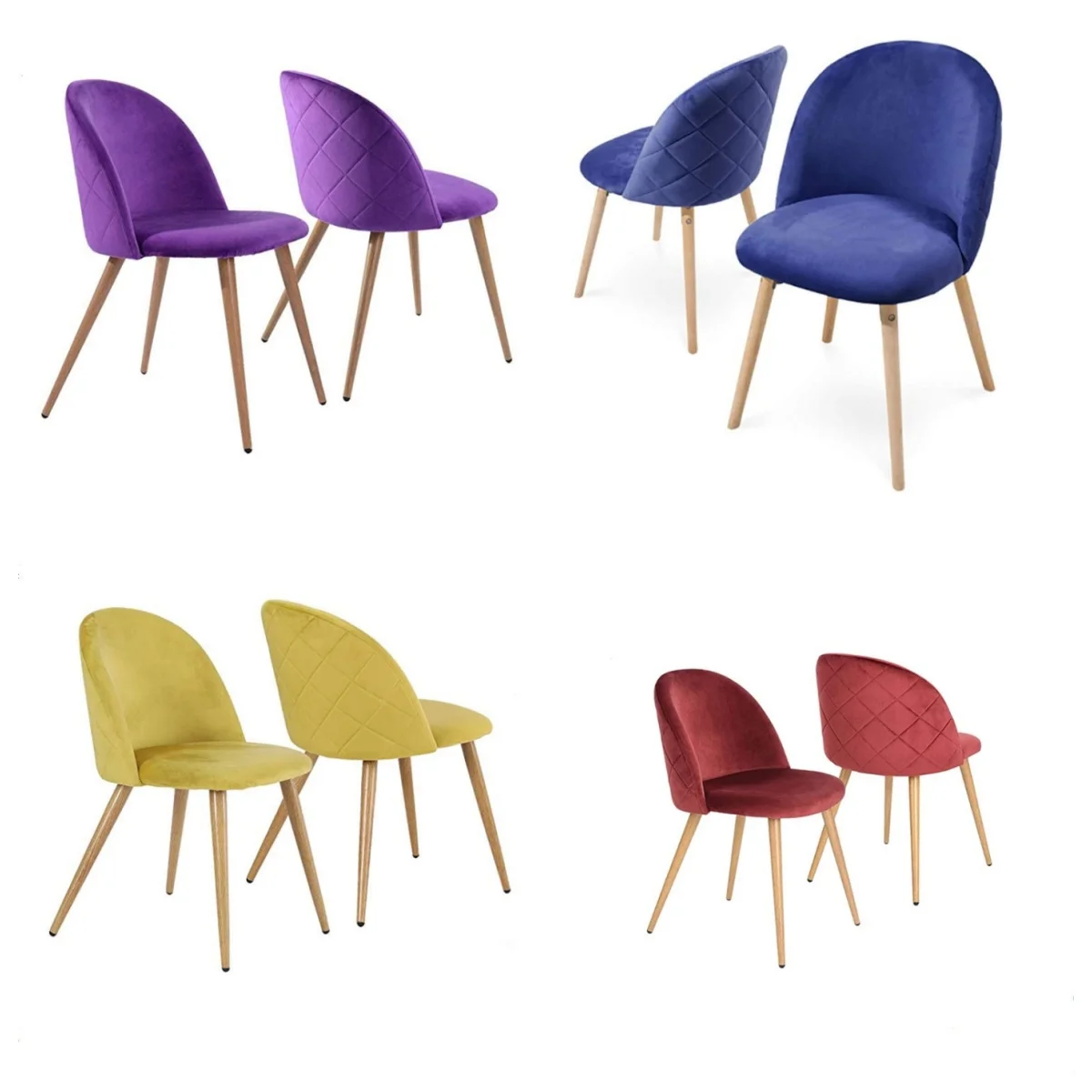 Modern Accent Geometric Luxury Velvet Upholstered Home Kitchen Hotel Hall Reception Dining Chairs with Metal Legs