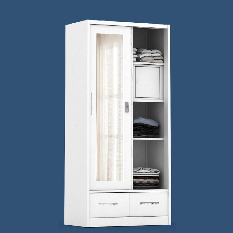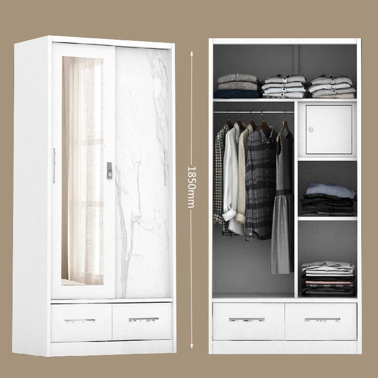 Flower transfer Double Sliding door closet mirror Steel wardrobe almirah cabinet Lemari Pakaian Besi Sliding
