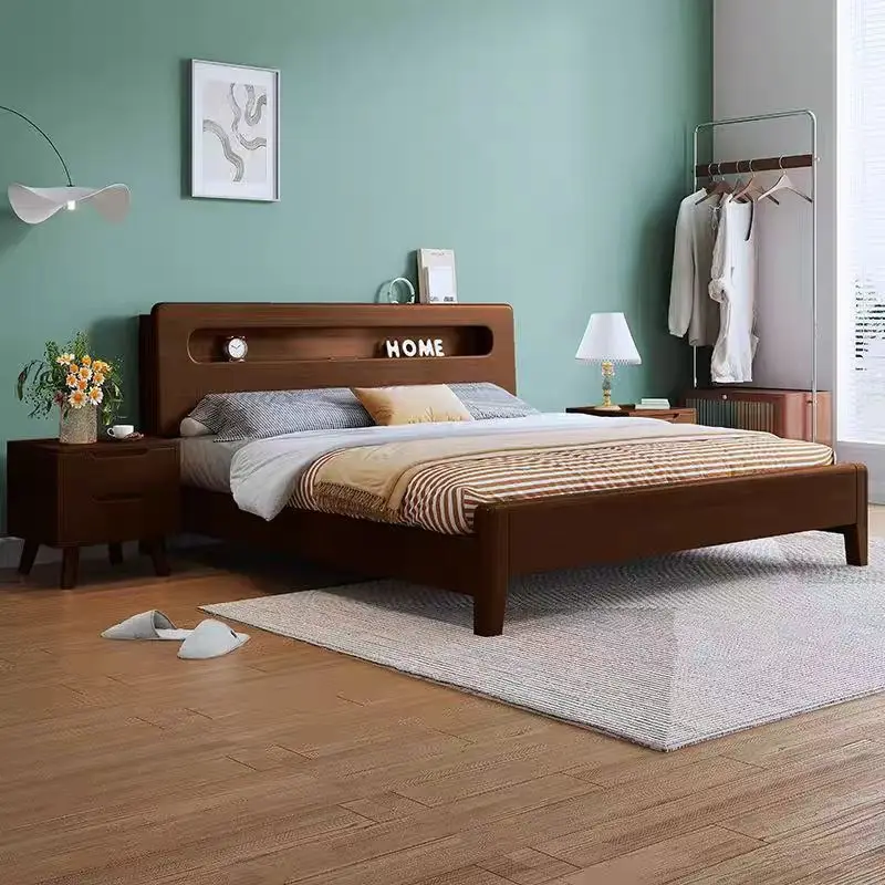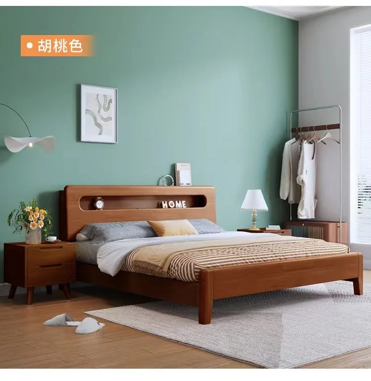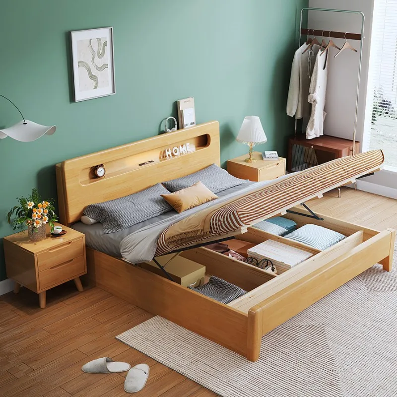 Modern Single Queen Size Wood King Size Bed Frame Storage for Bedroom Furniture Nordic Style Solid Wood Bed 150*200CM