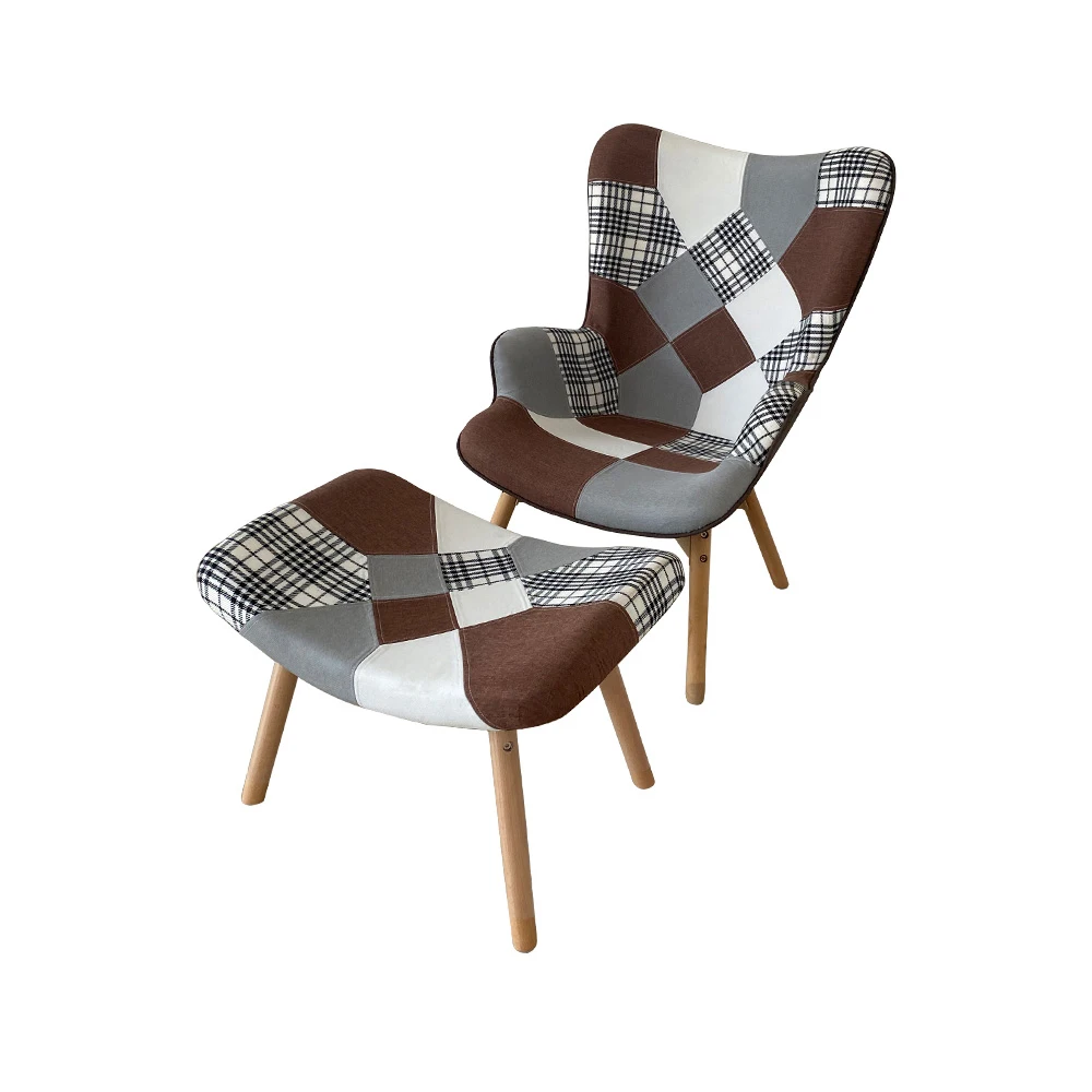 Comfortable Modern Fabric Splice Patchwork Plinth Hotel Home Living Room Bedroom Lazy Foot Leisure Recliner Lounge Chairs