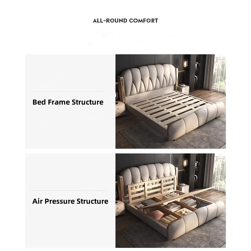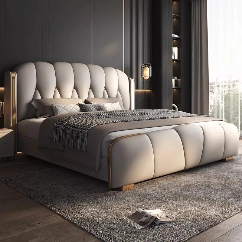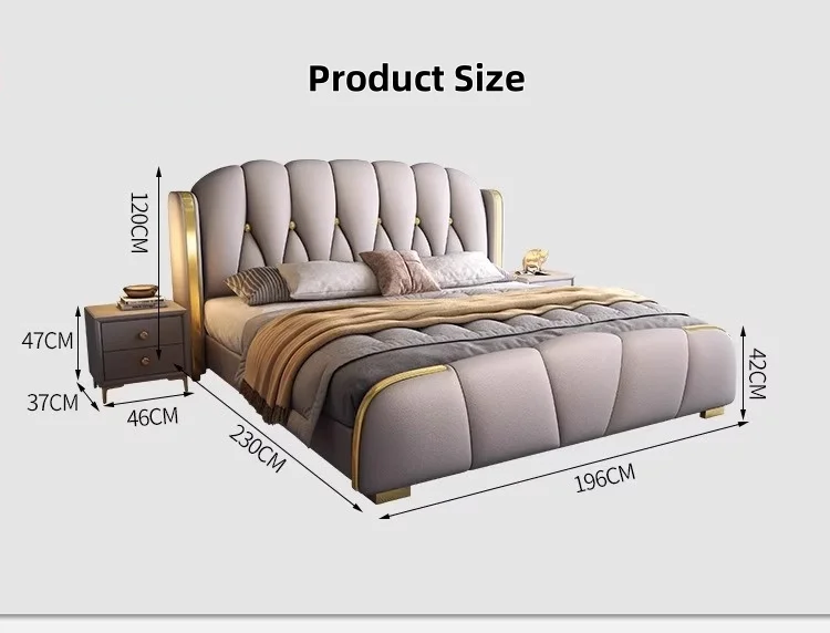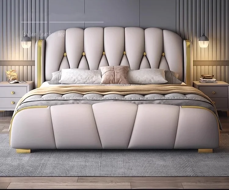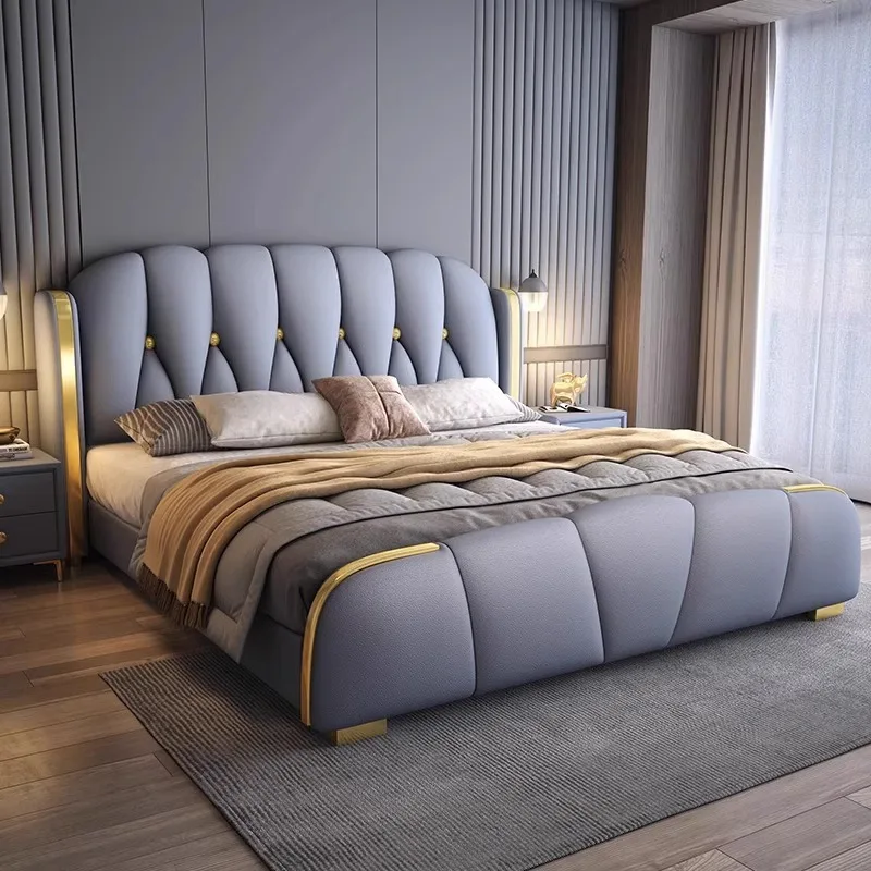 Quality Manufacturers Bedroom Furniture Luxury King Size Modern Leather Bed Frame High Double Bed Upholstered Leather Headboard