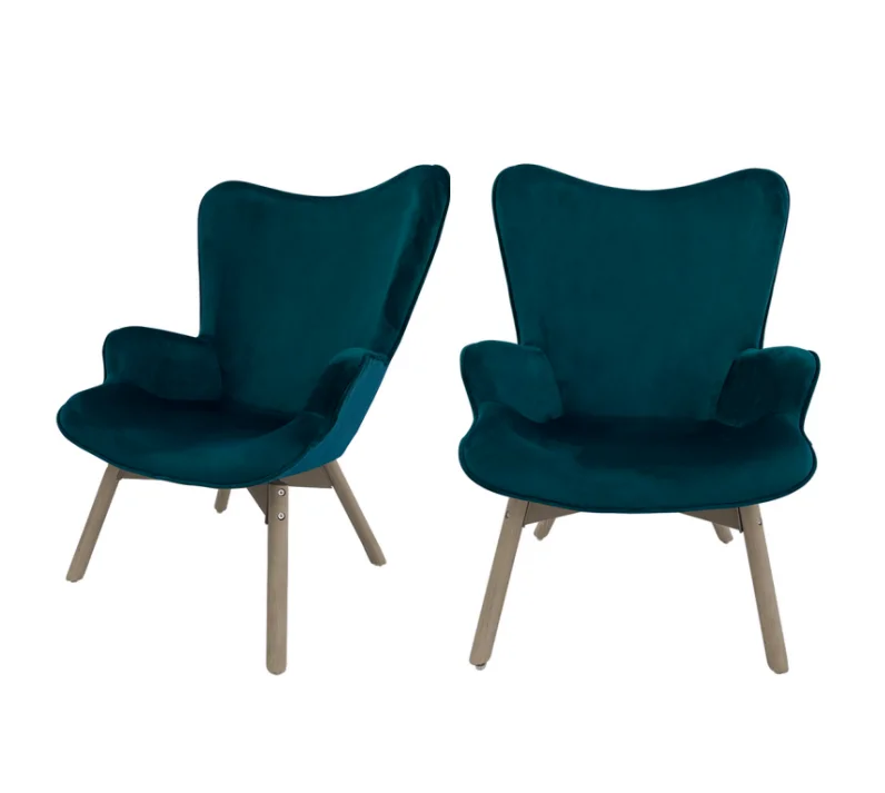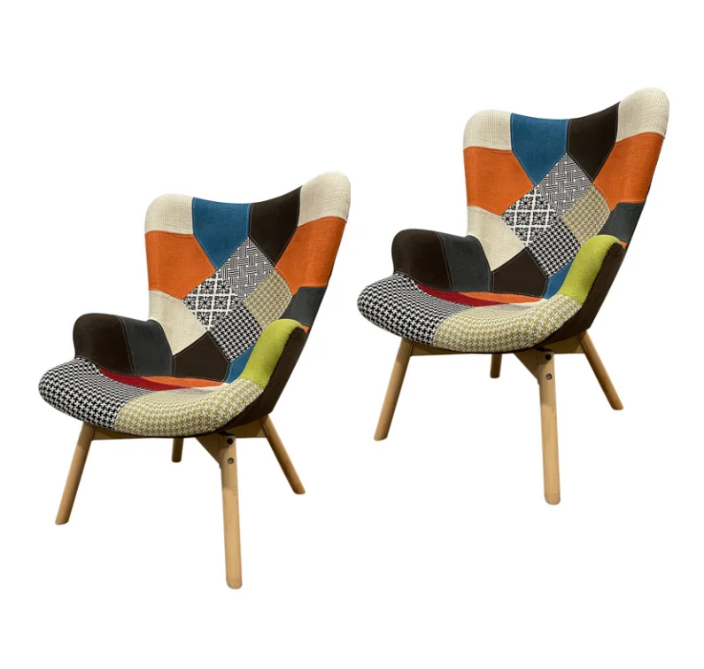 Modern Design Patchwork Fabric Swimming Pool Sea Vocation Home Living Room Furniture Wood Legs Lazy Lounge Chair With Armrest