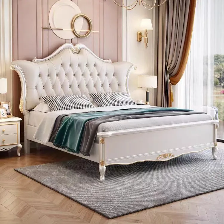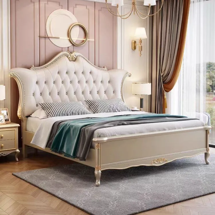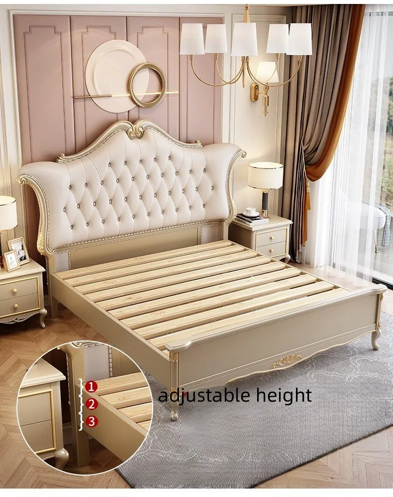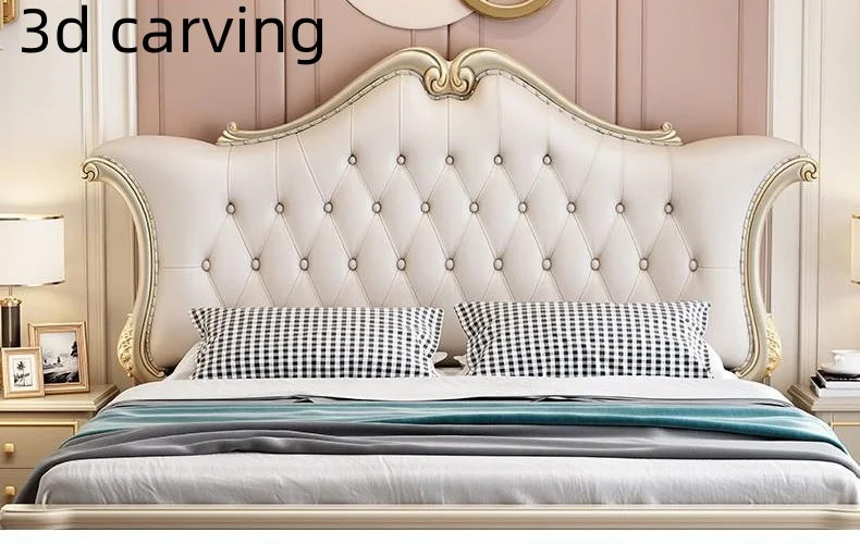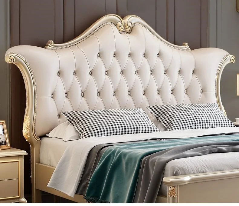 Upholstered Queen European Double Bed Luxury Solid Wood Genuine Leather King Size Queen Size Bed Frame