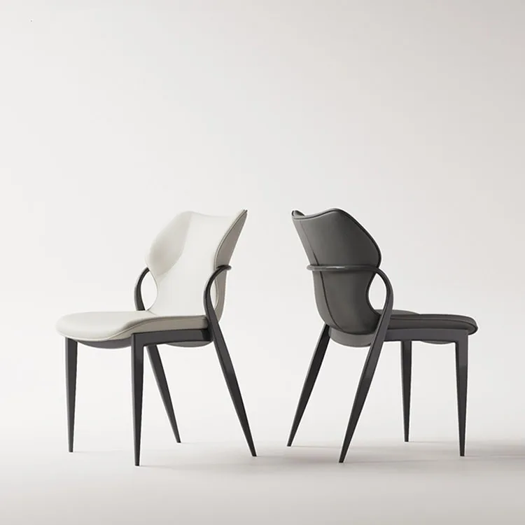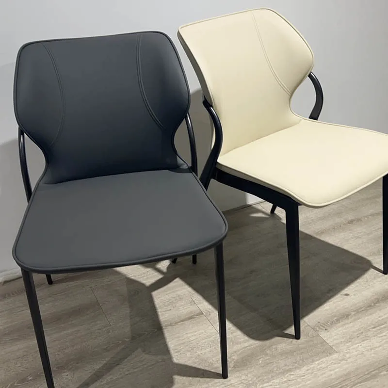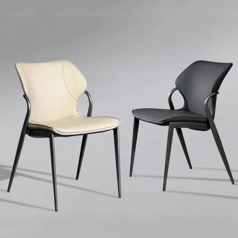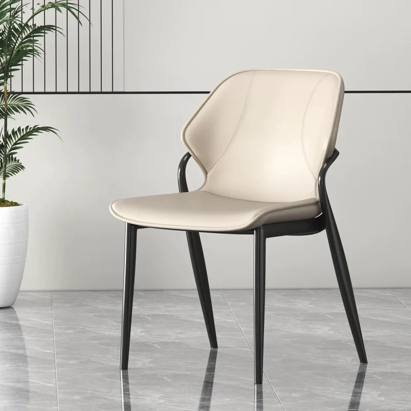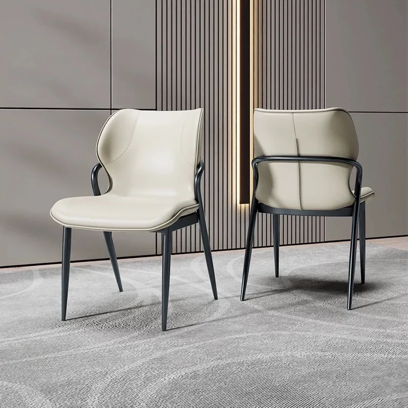 Italian Light Luxury High-End Dining Chair Back Stool Modern Hotel Chair Carbon Steel Leather Living Room Dining Office Chairs