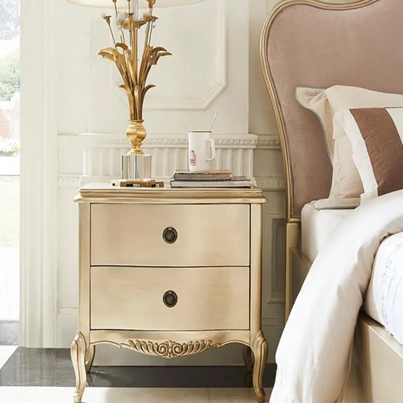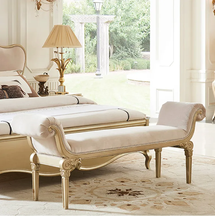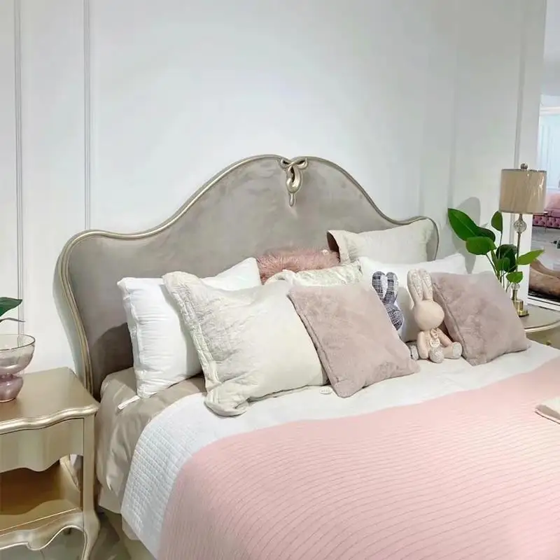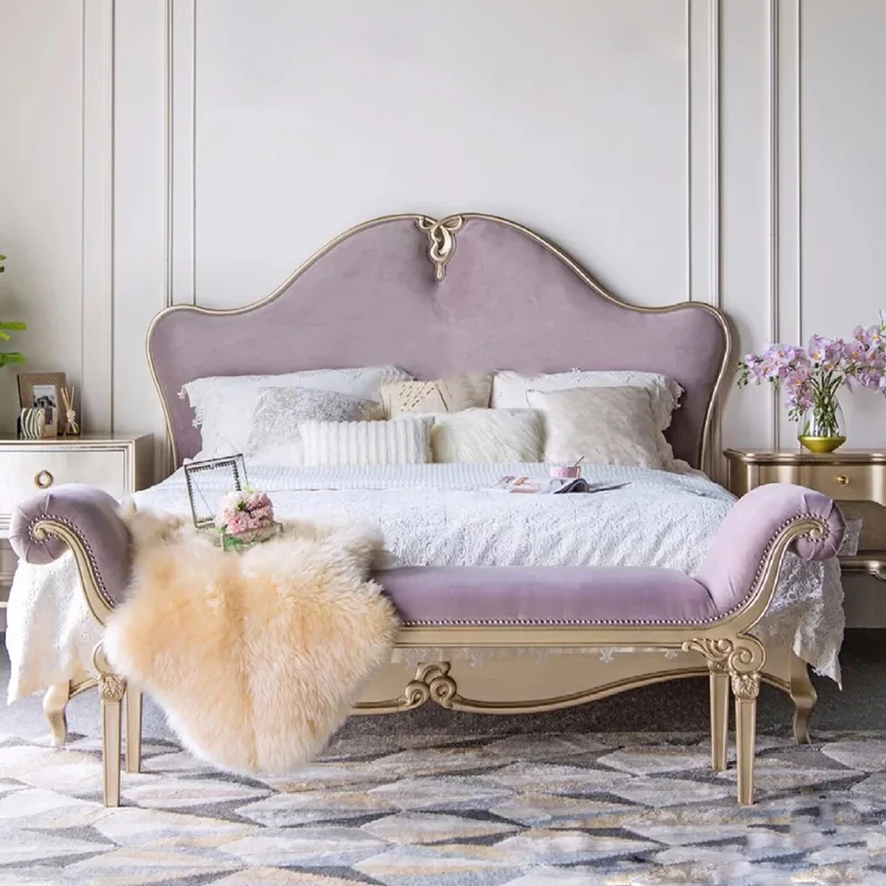 American Light Luxury Modern Simple Fabric Bed French Solid Wood Carved 1.8m Double Wedding Bed French Princess Bed