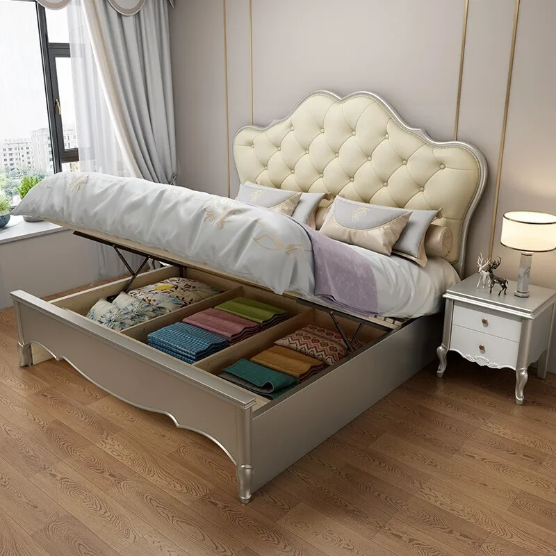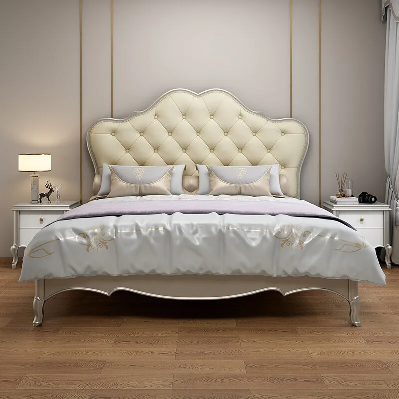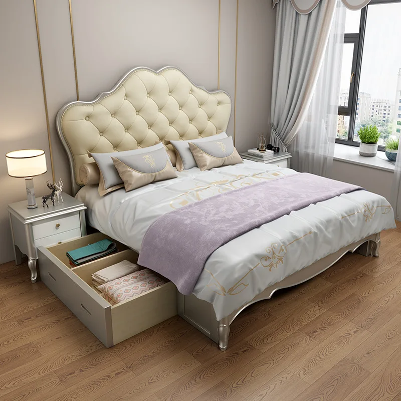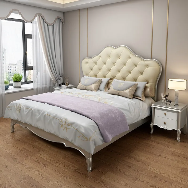 American Style Solid Wood Bed 1.8m Master Bedroom Soft Back European Style Latest Double 150*200CM Bed