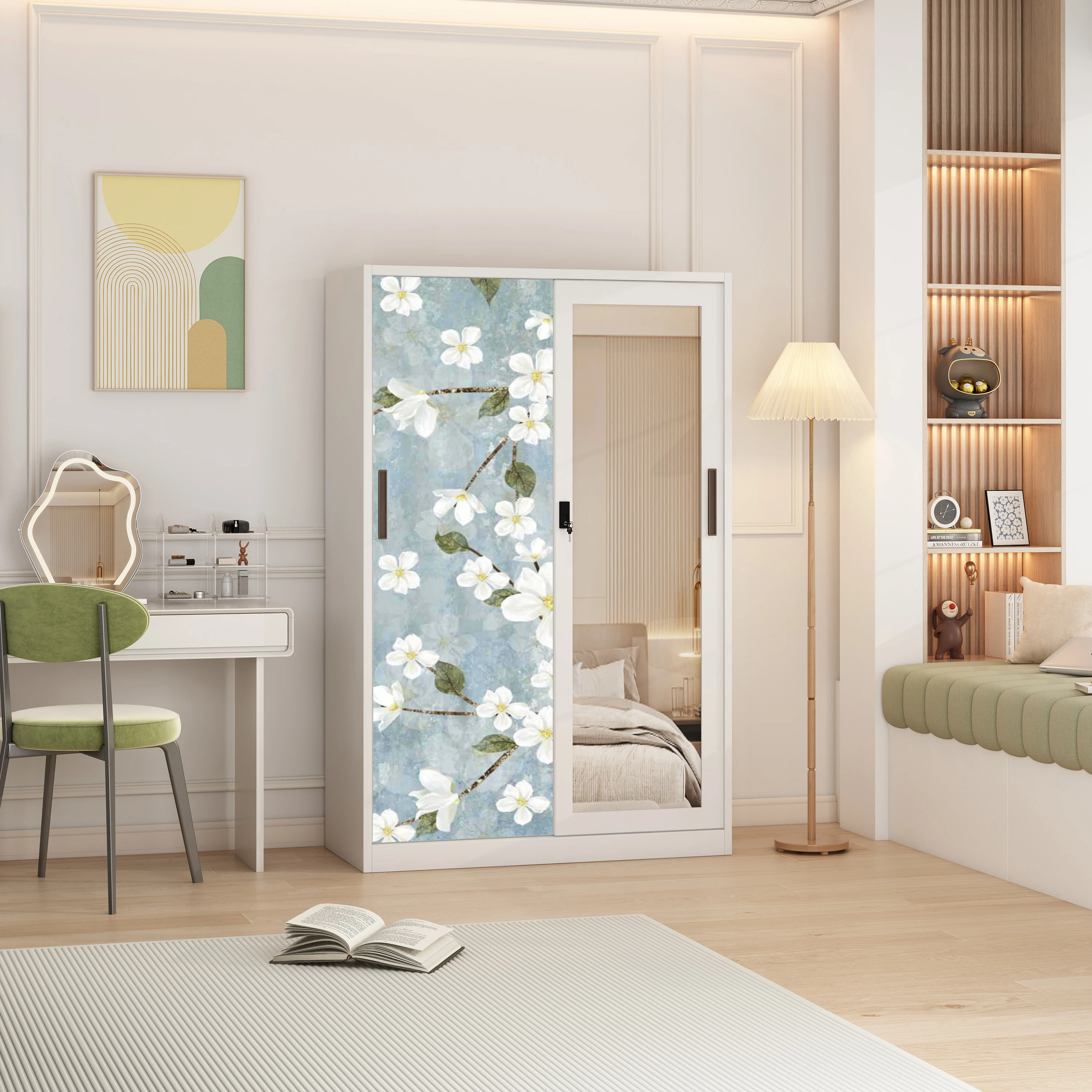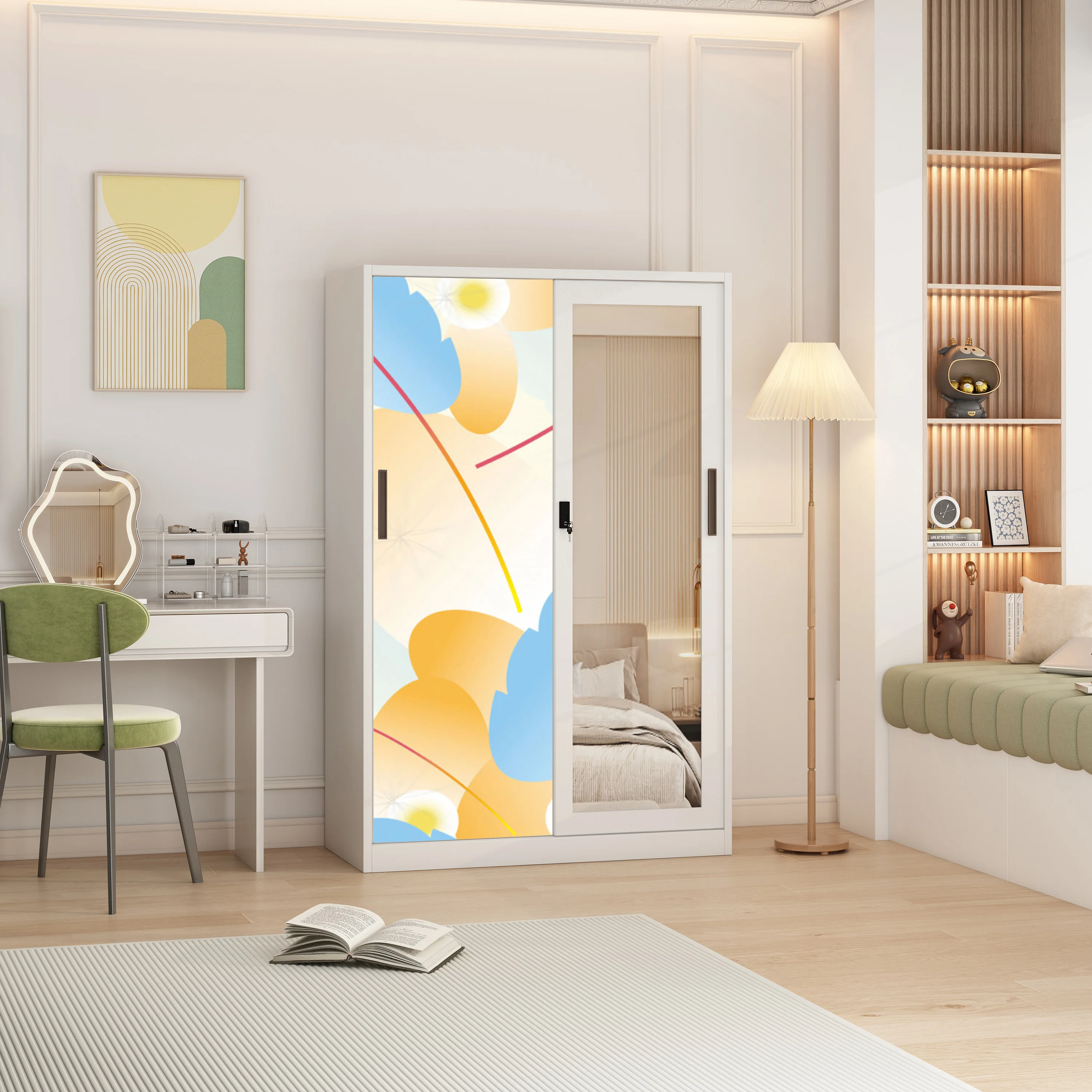 Metal wardrobe sliding doors fireproof locker with mirror iron storage wardrobe cabinet bedroom furniture