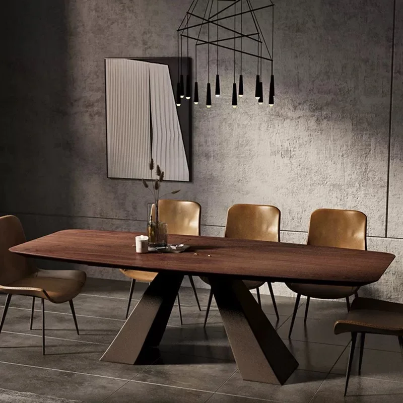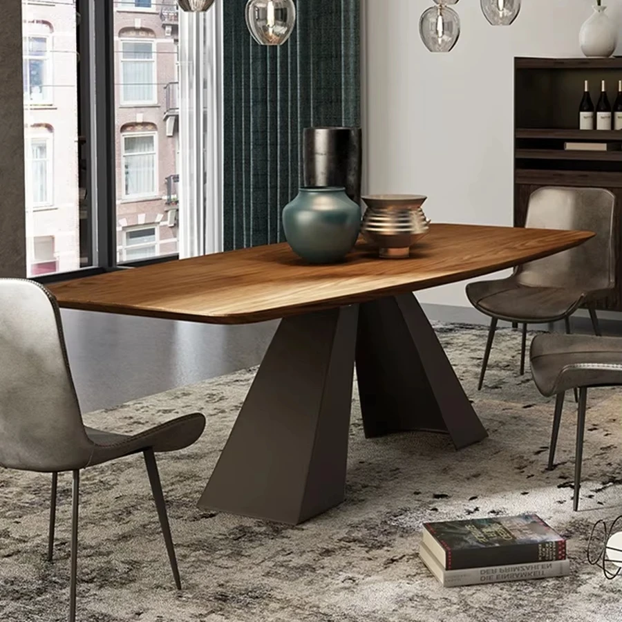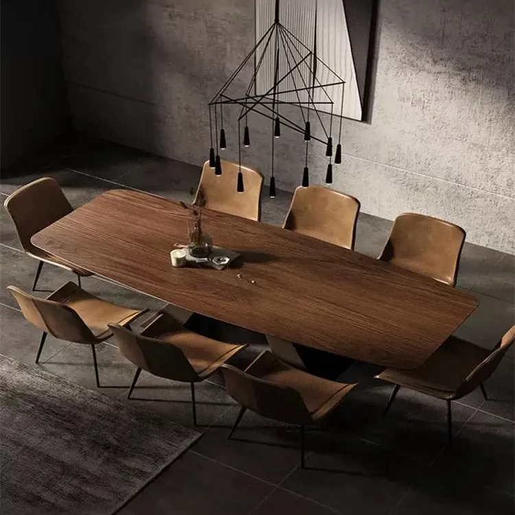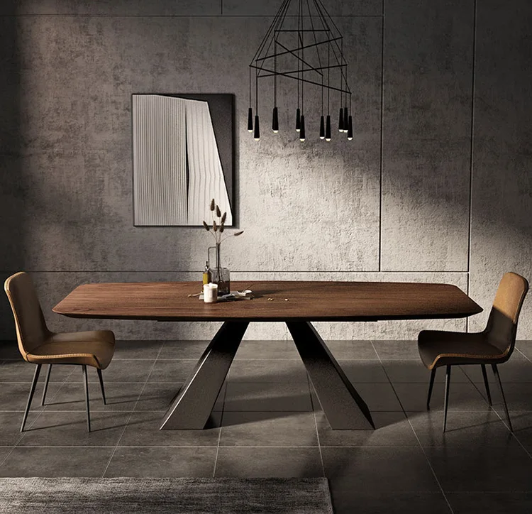 Product Name | Scandinavian Modern Simple Solid Wood Dinning Table Set For 6 Rectangular Household Walnut Colour Metal Base Dining Table |