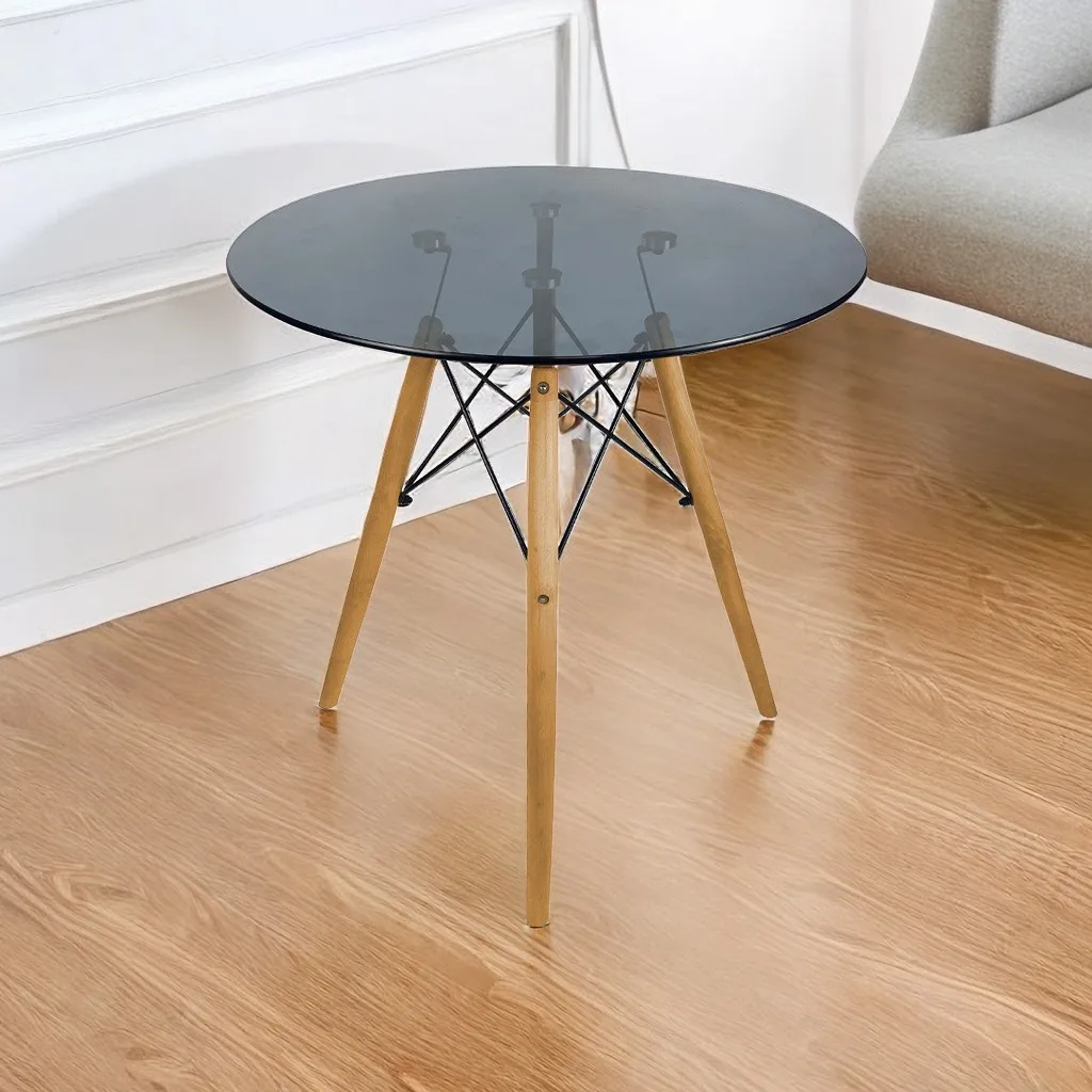 Home Living Room Glass Side Table Center Table Legs Wood Top Glass Cheap Small Round Tea Coffee Tables