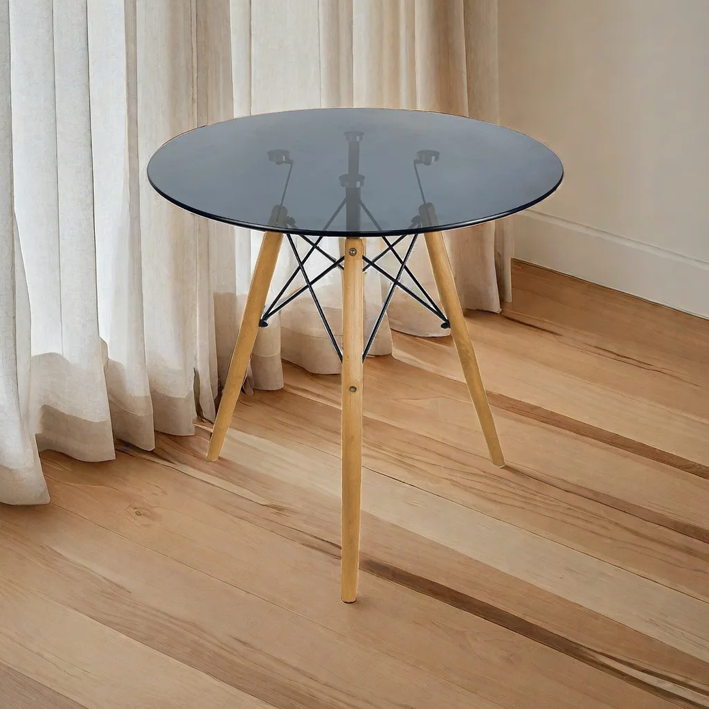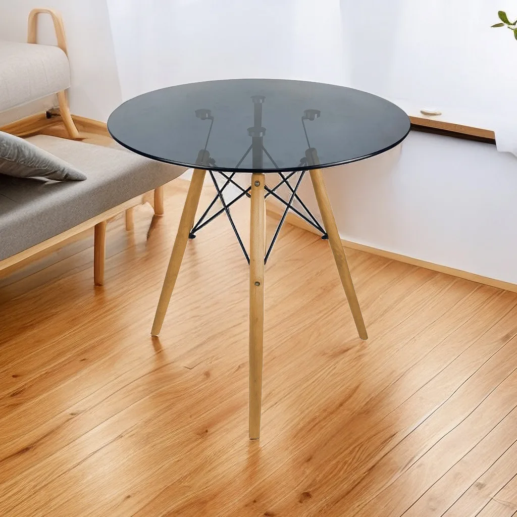 Glass TOP+Wood Legs
