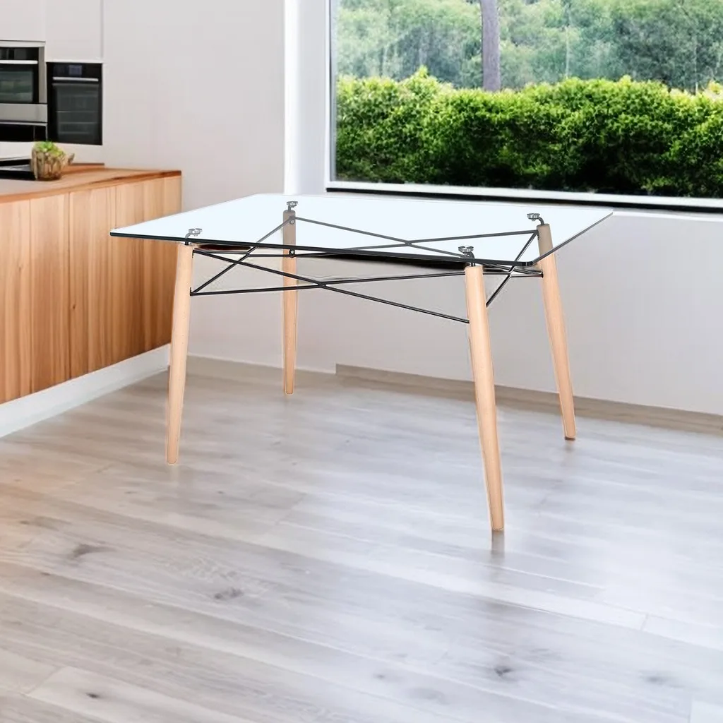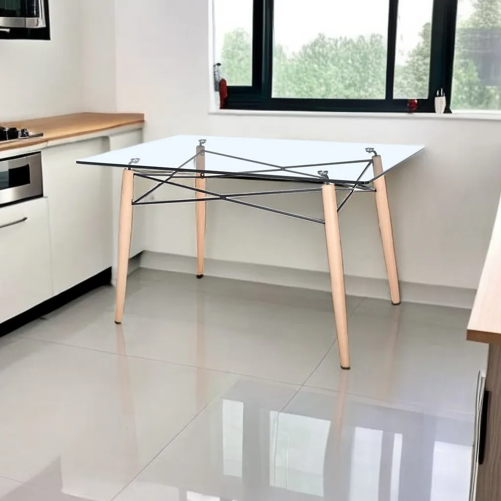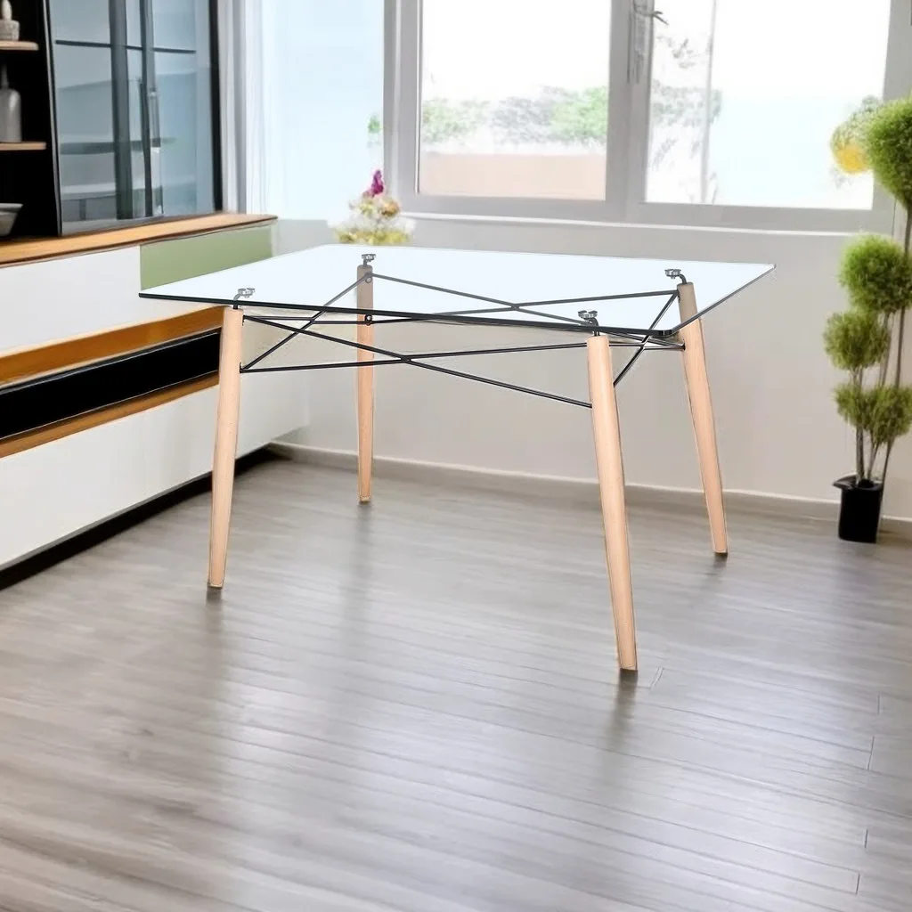 Dining Room Furniture Home Furniture Living Furniture Tempered Legs Wooden Glass Top Modern Kitchen Glass Dining Table