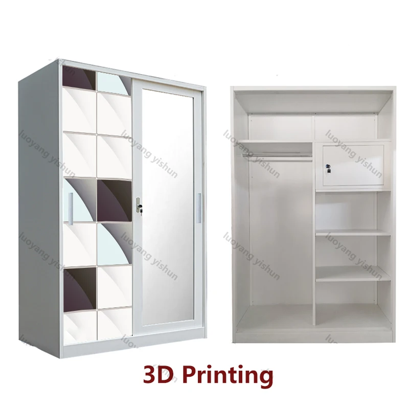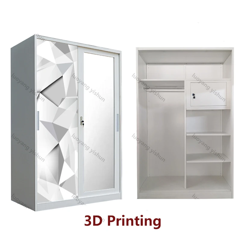 printed bedroom wardrobe door Lemari Pakaian designs outdoor indoor closet cabinet steel wardrobe metal wardrobe