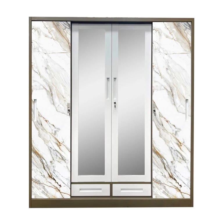 colour printing armoire sliding door cupboards bedroom almirah iron design closet metal cabinet mirror 4 door steel wardrobe