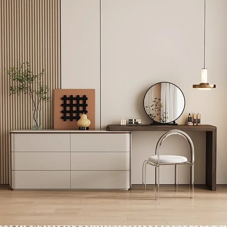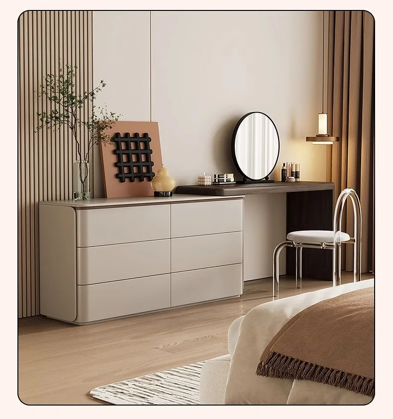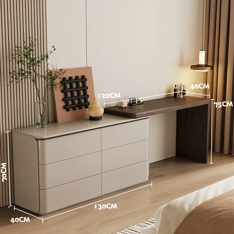 Dresser organizer all-in-one bedroom modern minimalist bedside chest of drawers retractable swivel makeup table solid wood
