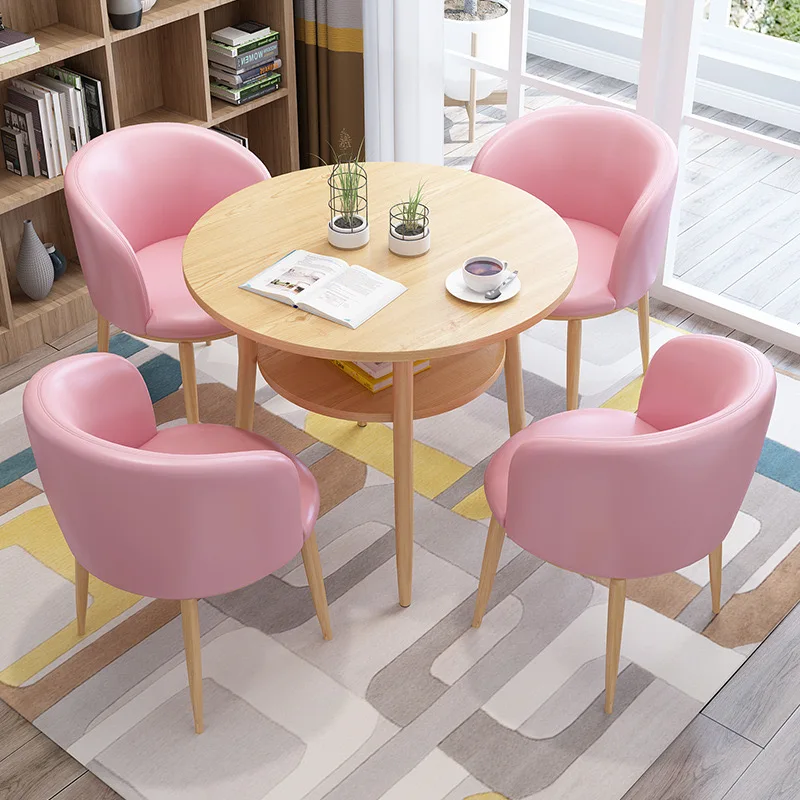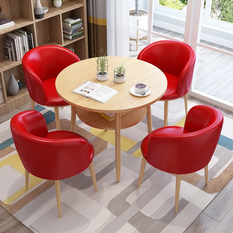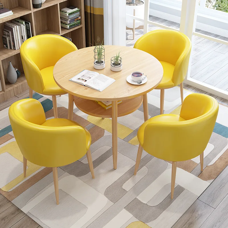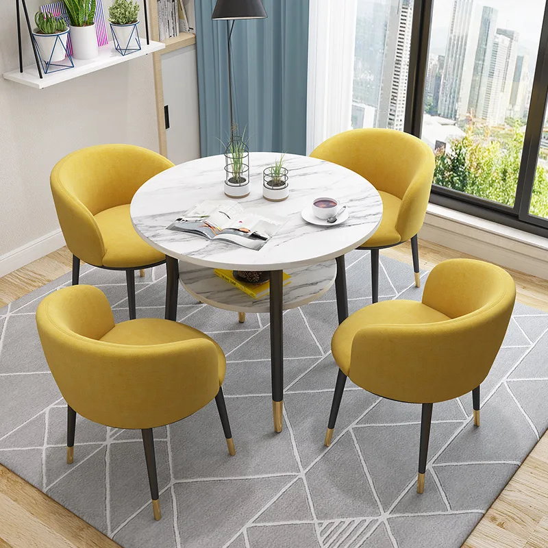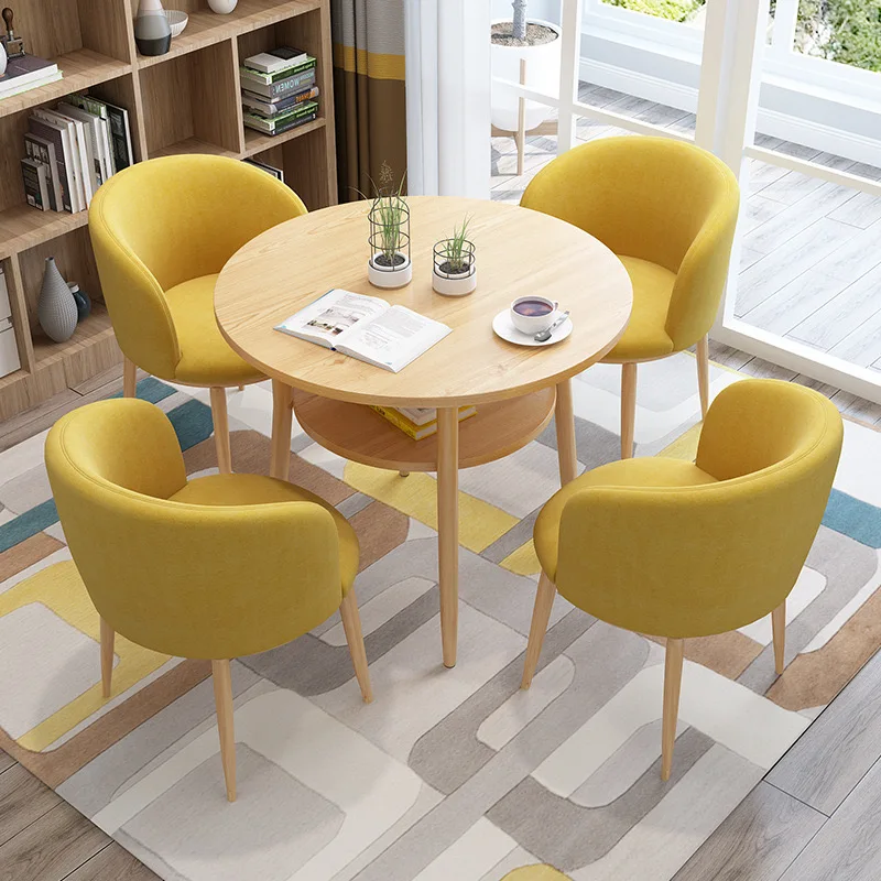 Product Name | Double Shelf MDF Negotiation Round Wood Dinning Table Set For 4 Carbon Steel Frame Reception Coffee Restaurant Hotel Table Set |