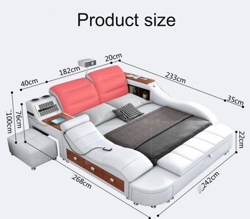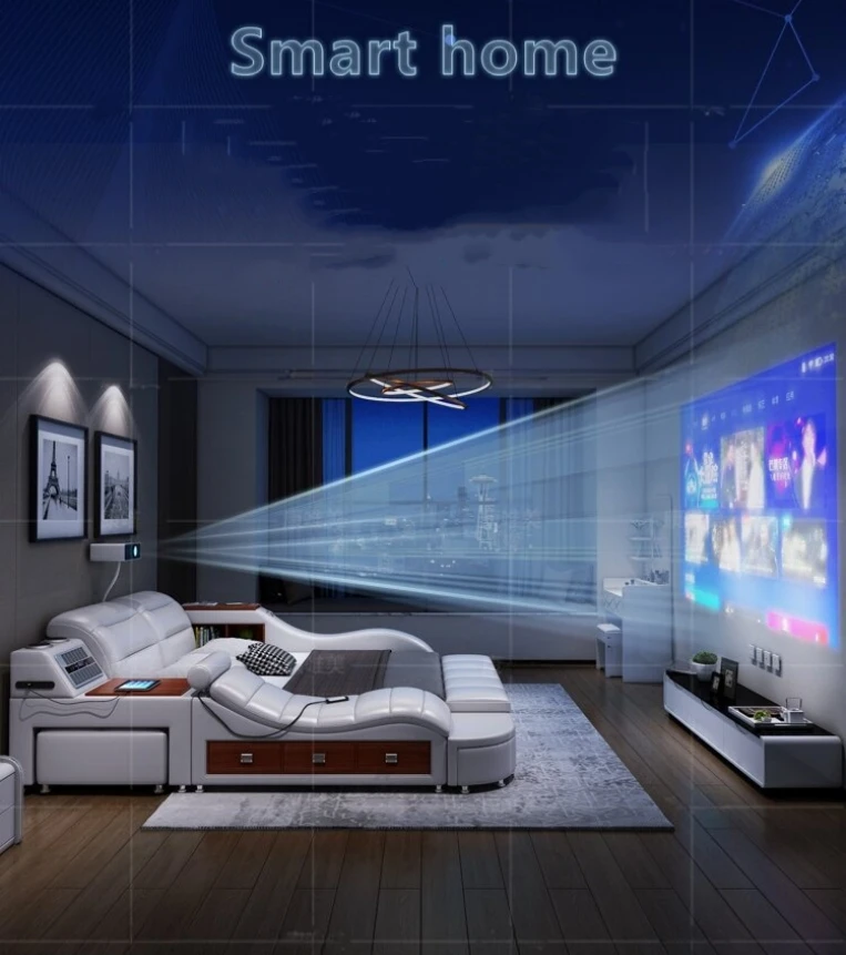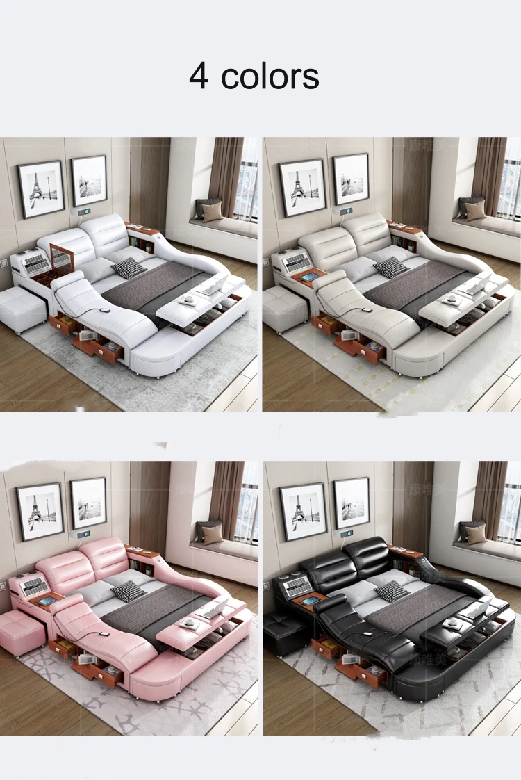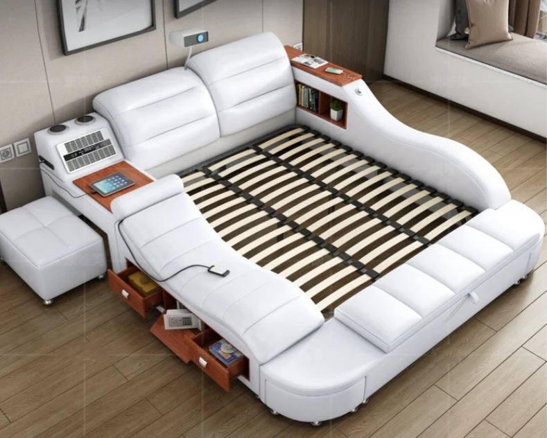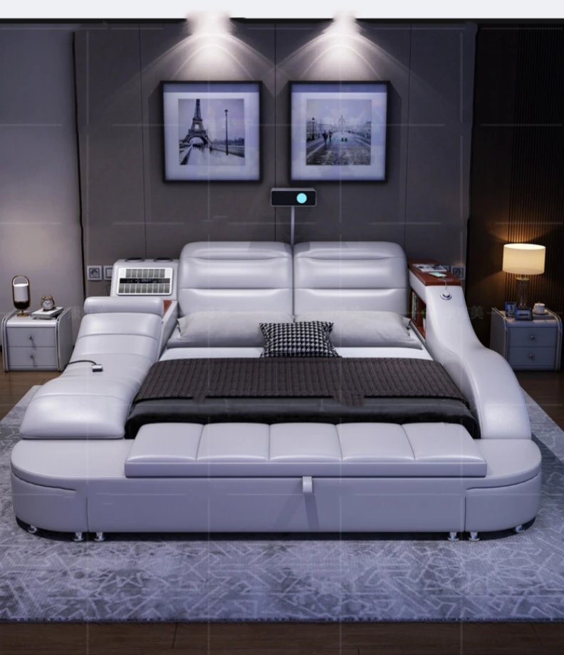 Modern Design Smart Leather Bed King Size Frame Double Bedroom Furniture Set Queen Size Multifunctional Smart Luxury Bed With TV
