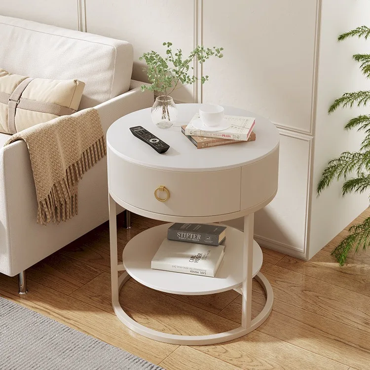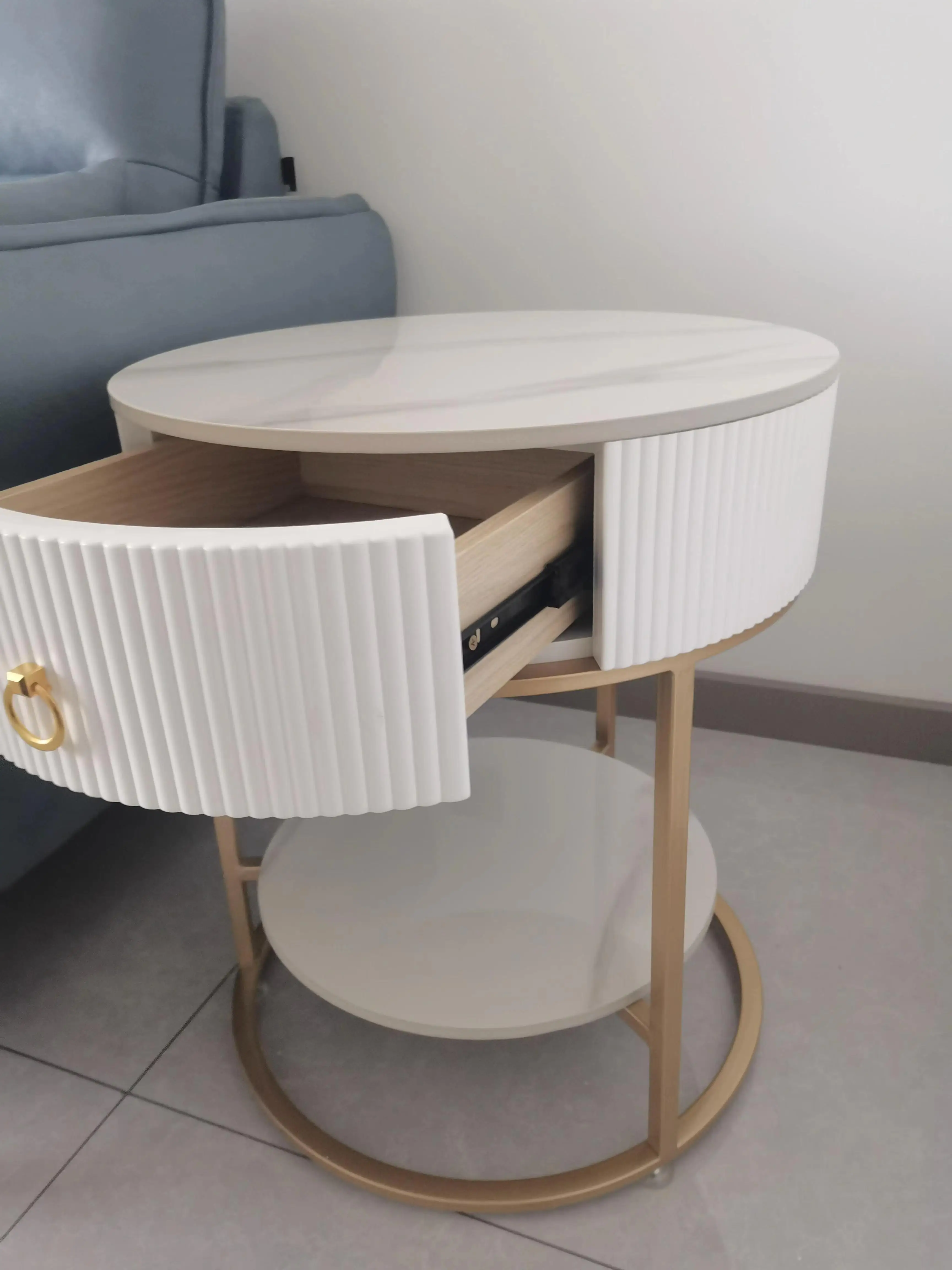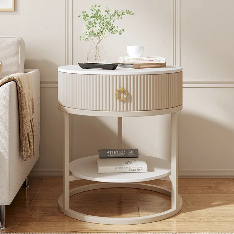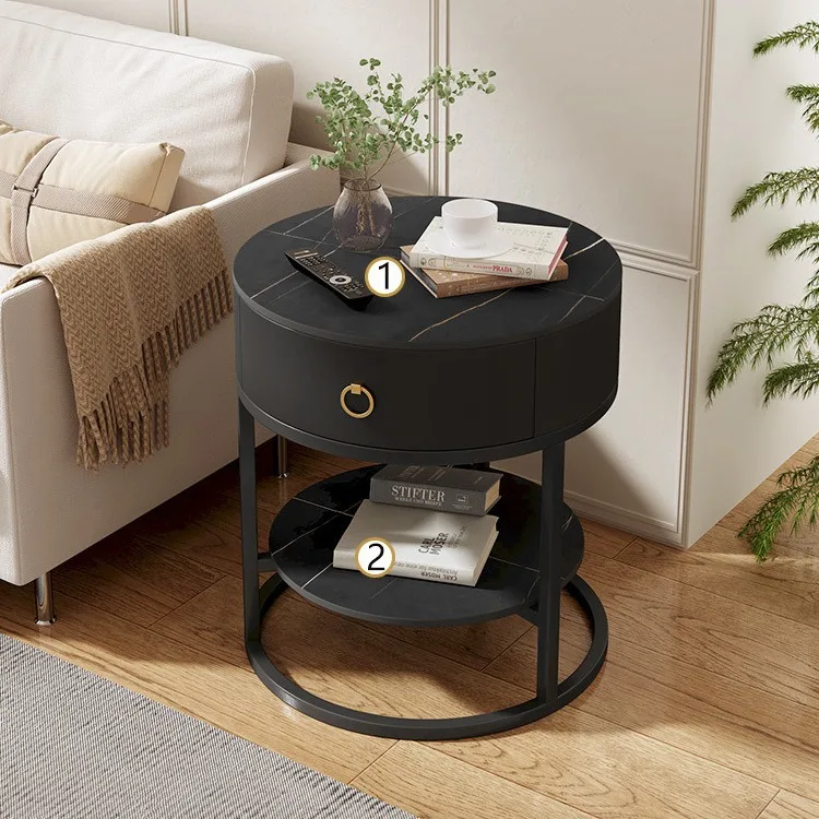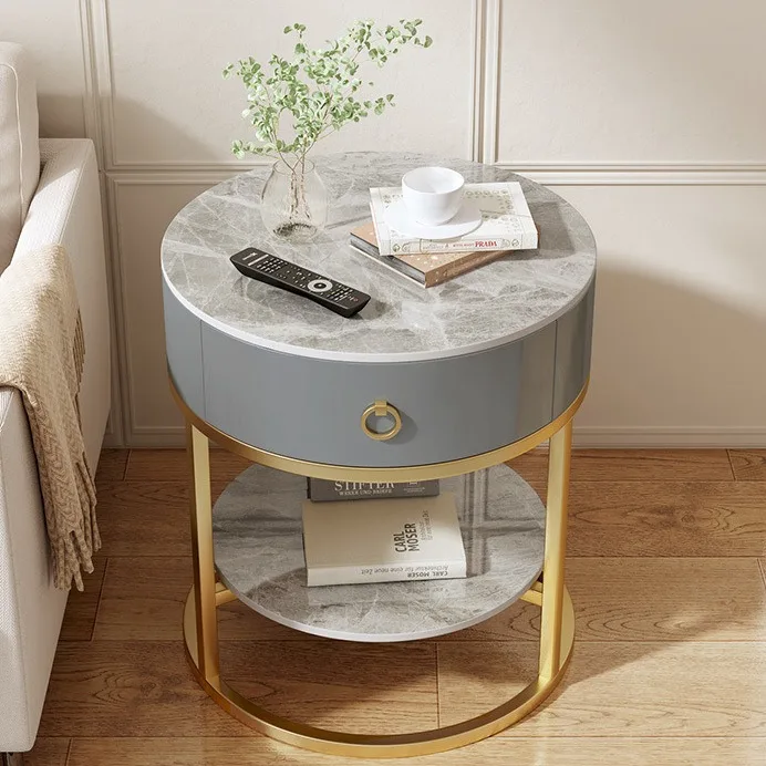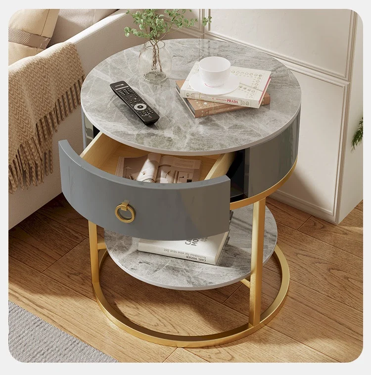 Luxury Modern Round Rock Slab Drawer Living Room Sofa Simple Side Table with Bedside Round Table