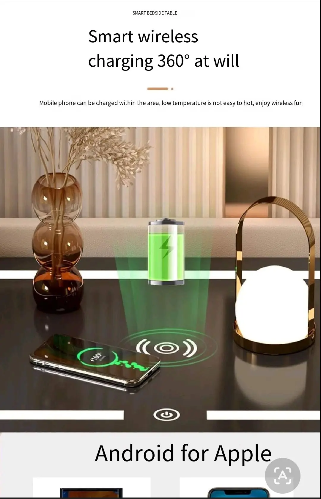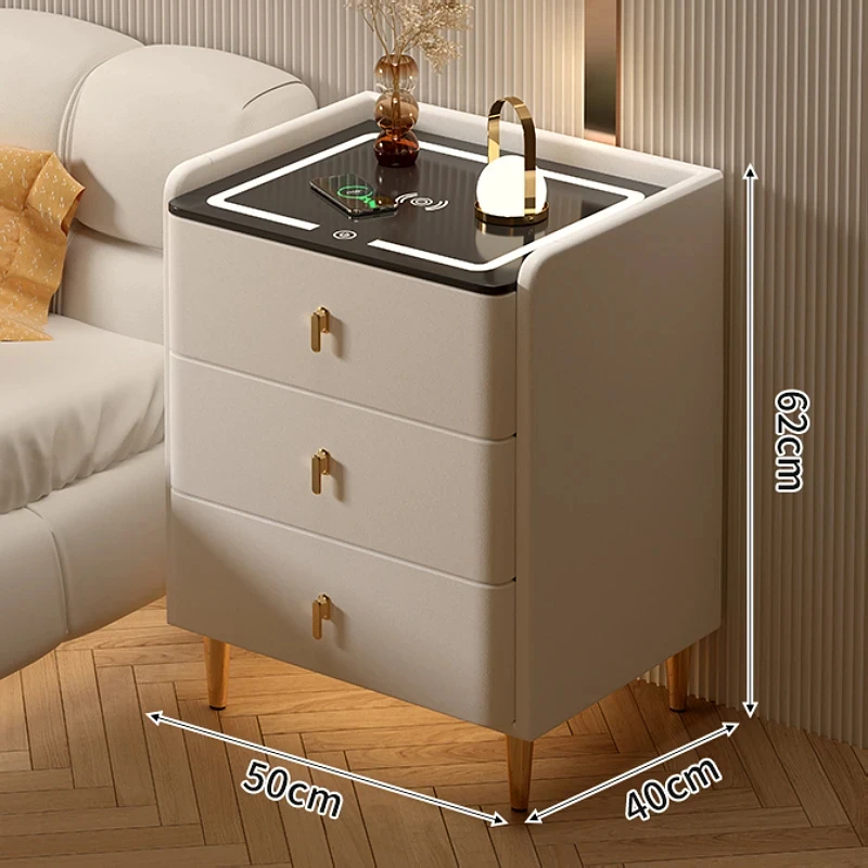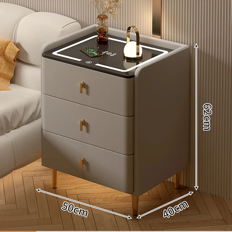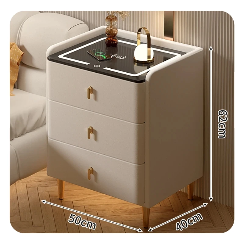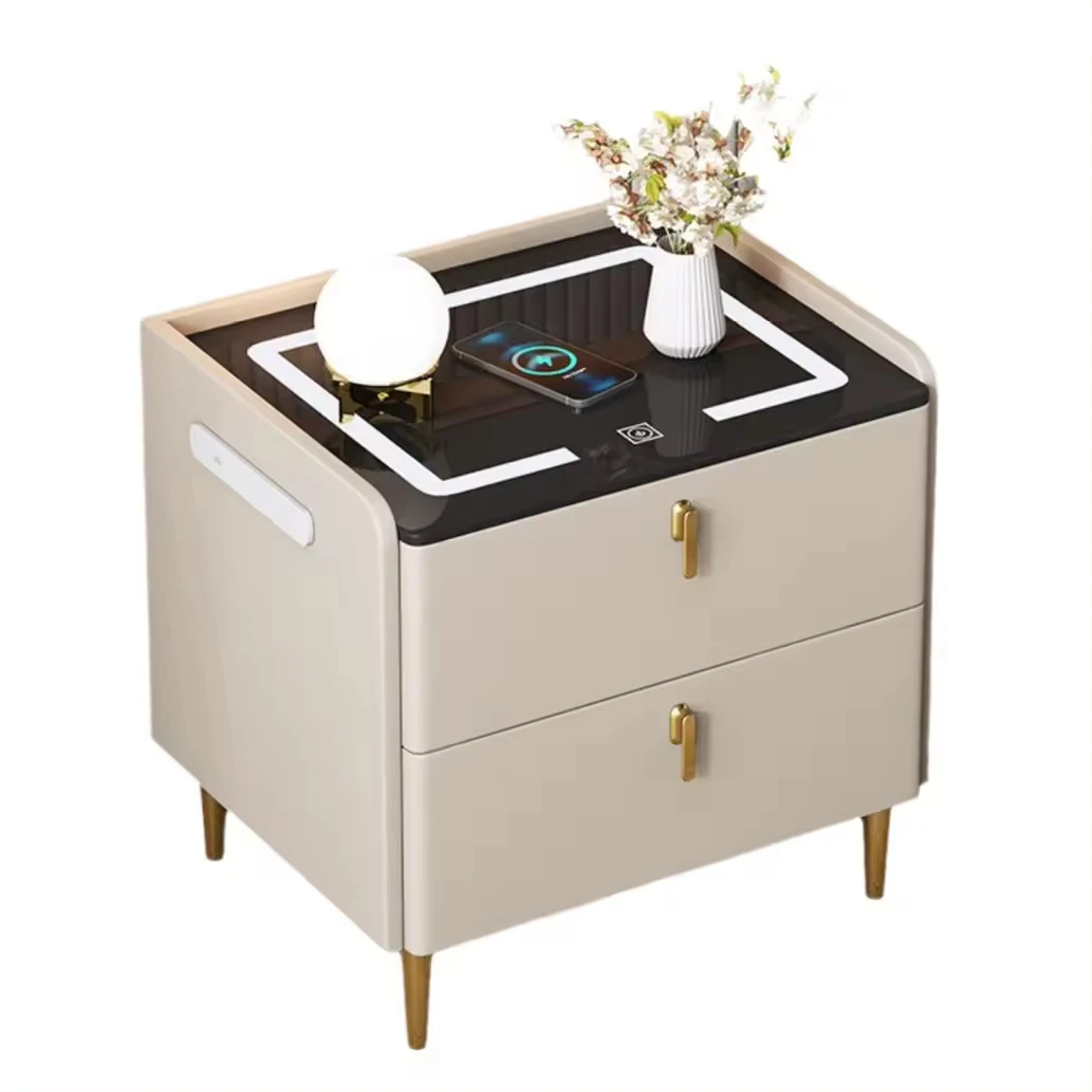 2024 New smart bedside table Home bedside cabinet fingerprint lock wireless charging light multi-functional three-pump one