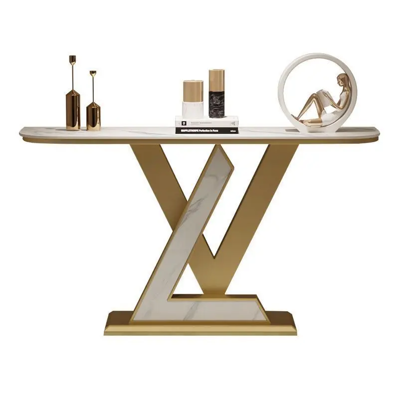 Gold Luxury Console Table Elegant Entrance Modern Stainless Steel Rock Slab Modern Minimalist Porch Table