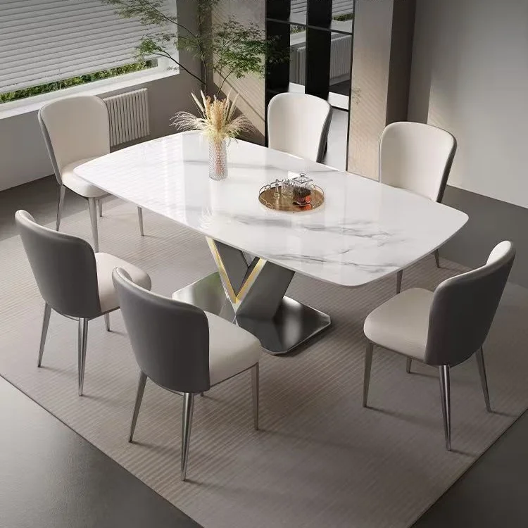 Modern Luxury Kitchen Snow White Dinning Room Furniture Dining Table And Chair Sets 4 6 Chairs Dining Table And Chair Set
