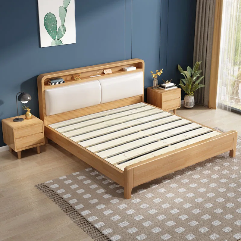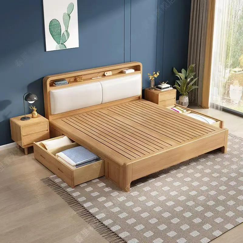 Factory Wholesale Modern Bedroom Furniture Storage Double Bed with USB Drawers King Size Bed Frame Wooden Bed