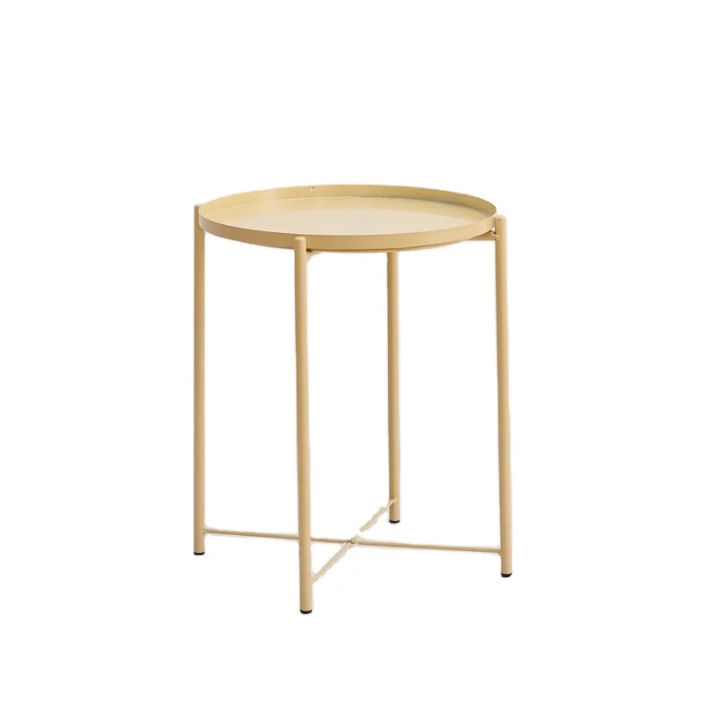 Round Gold Electroplated Leg Side Coffee Table Living Room Modern French Vintage Round Side Table