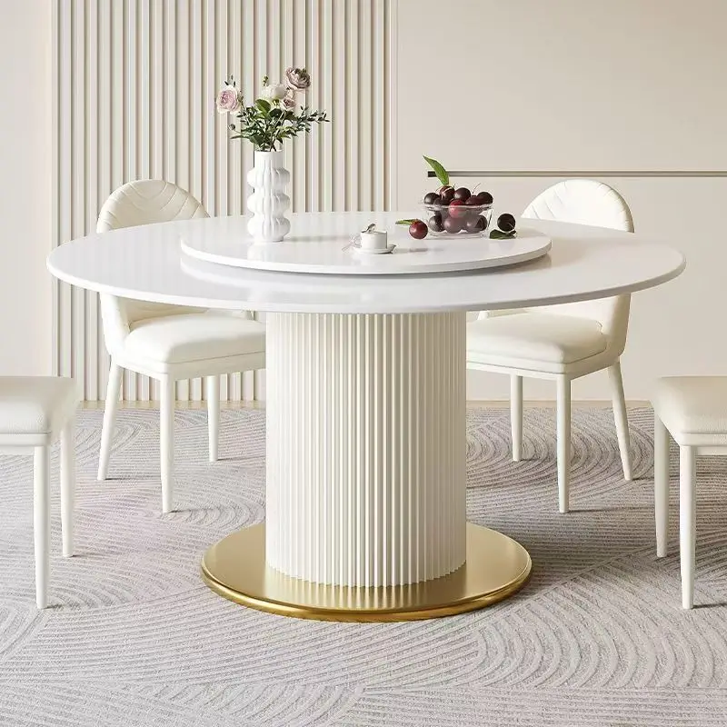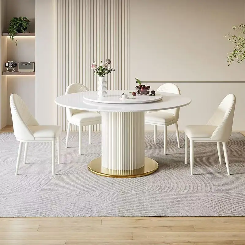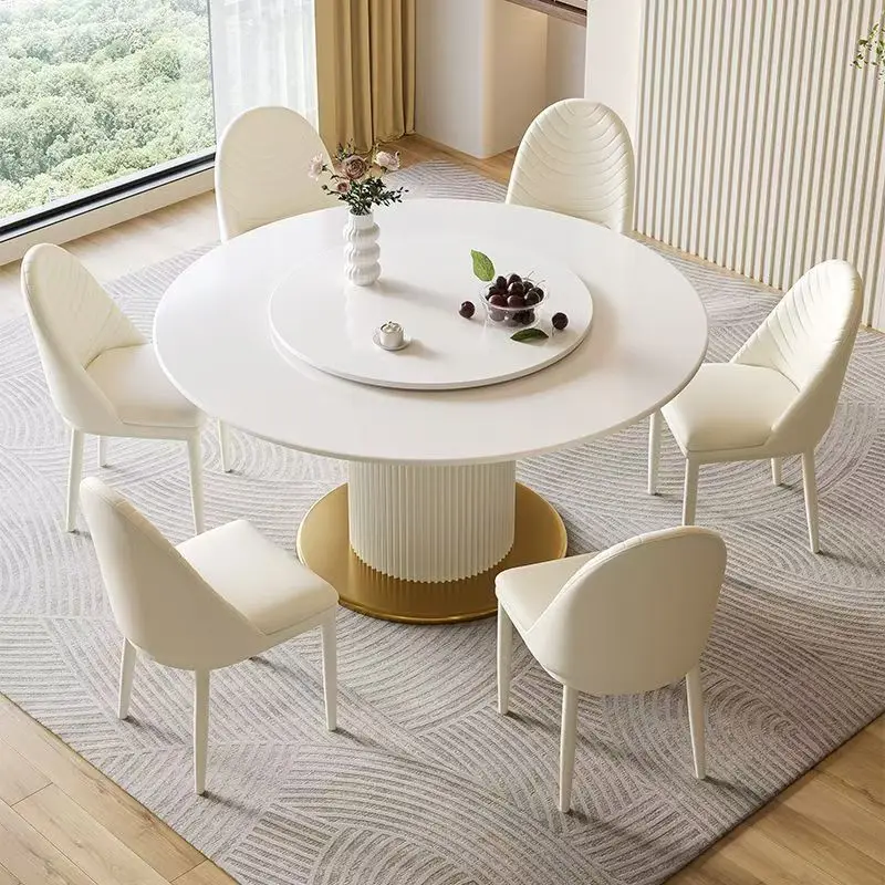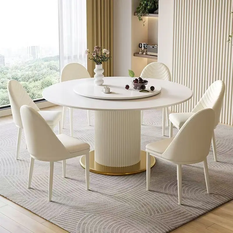 High Quality Small Round Style Home Small Apartment Luxury Nordic Dining Family Table Sets With 6 Chairs Banquet Table Set