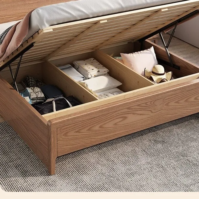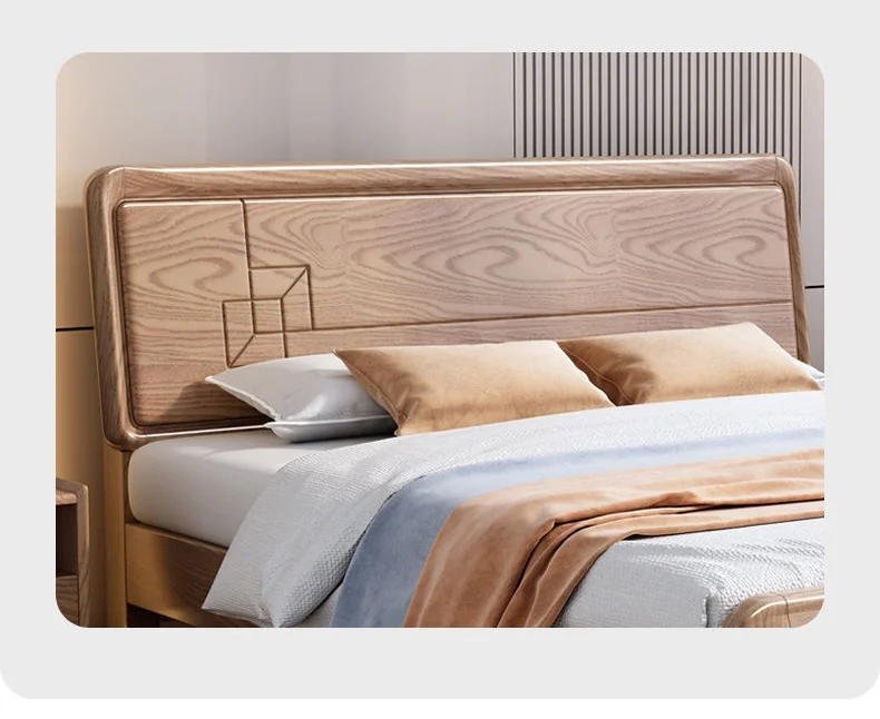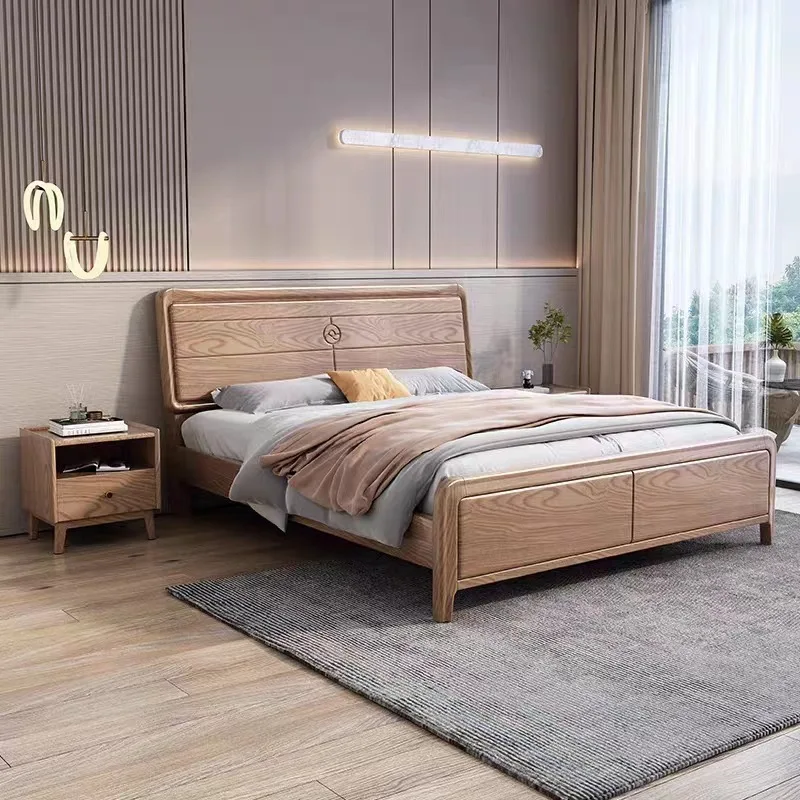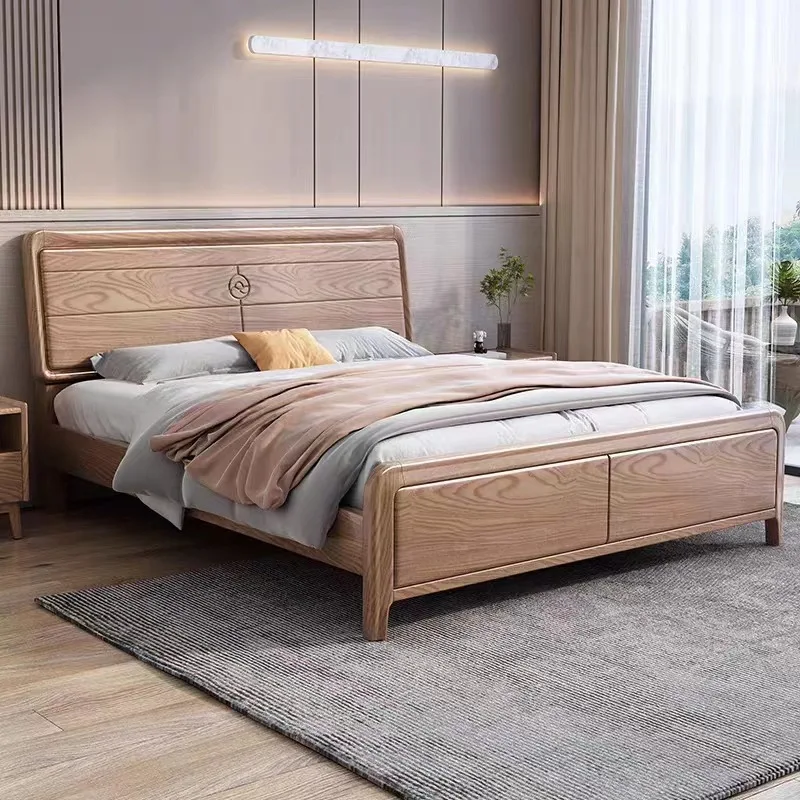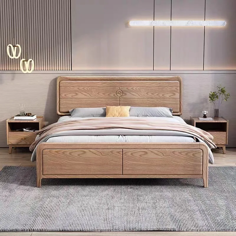 Nordic Solid Wood Bed Modern Simple Ash Wood 1.8 Master Bedroom Double bed 1.5 Log Style Single Bed Hotel Apartment Rental Room