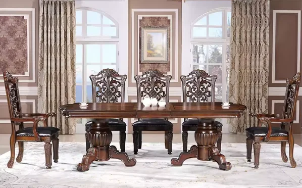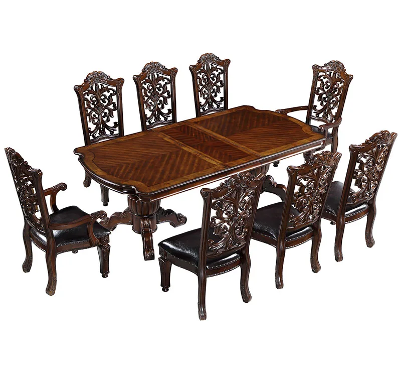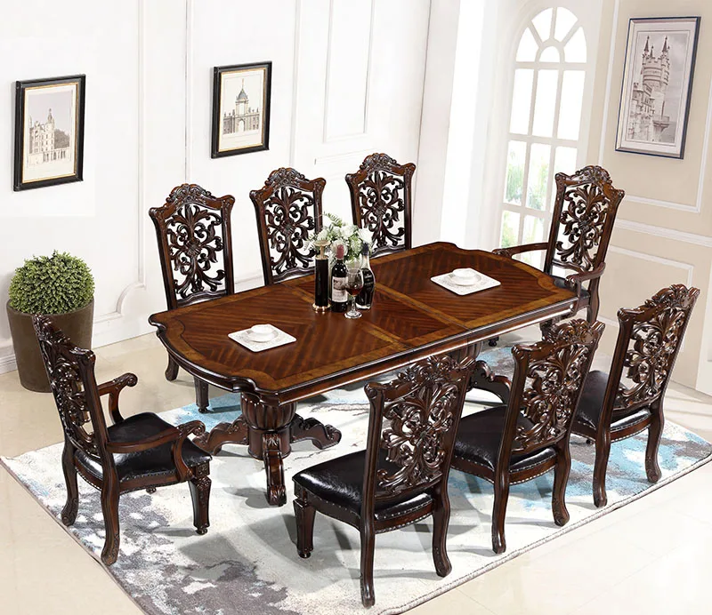 Product Name | Classic America Vintage Style Dining Table Set For 6 Home Furniture Extendable Solid Rubber Wood Square Table Carved Back Chair |