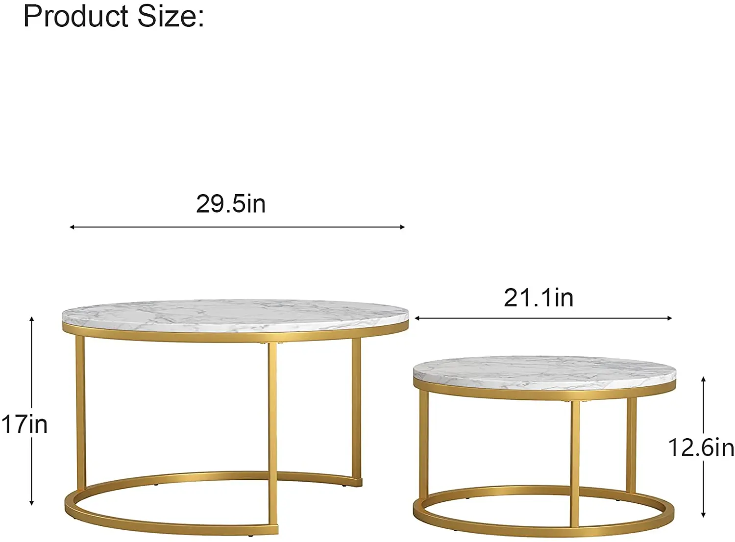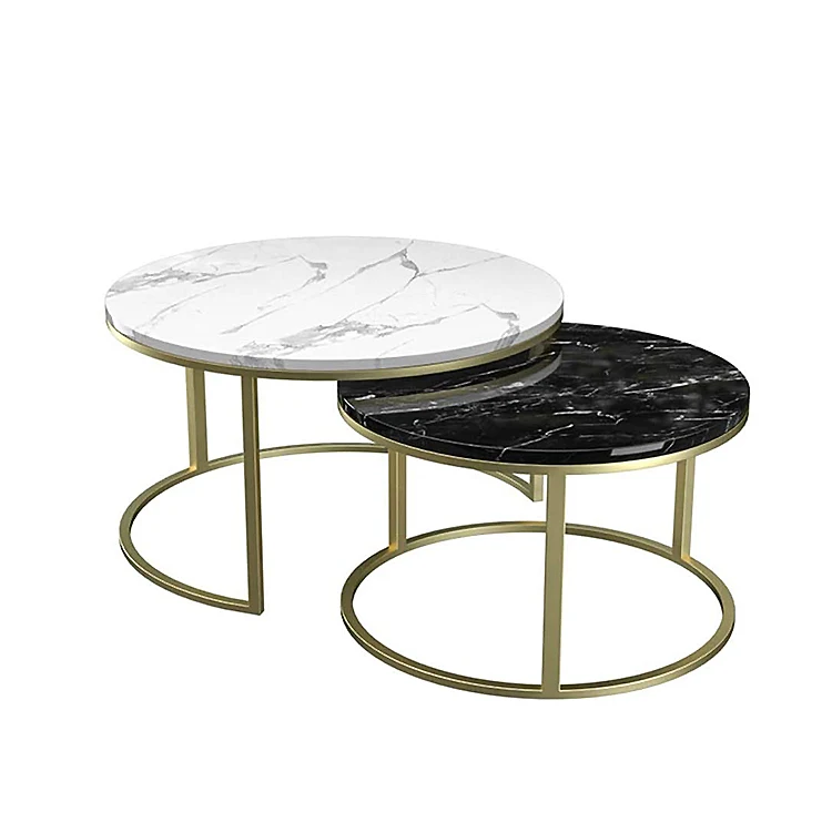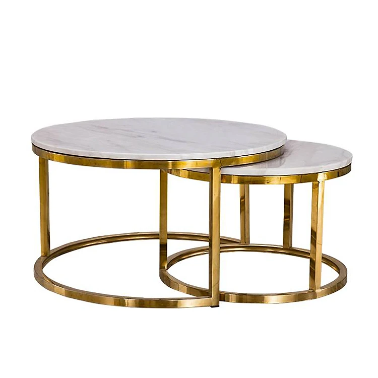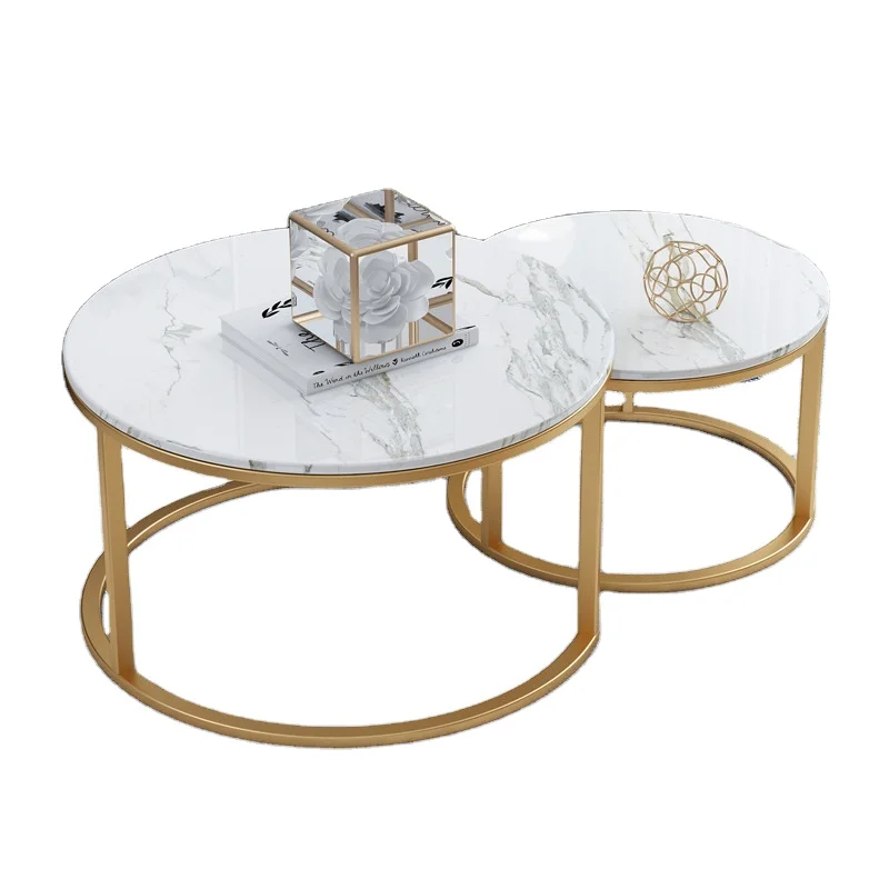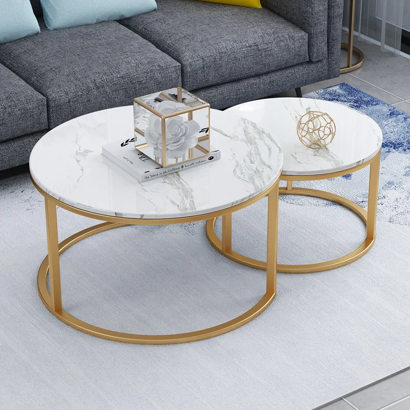 Modern coffee table luxury gold metal set 2 marble top living room table