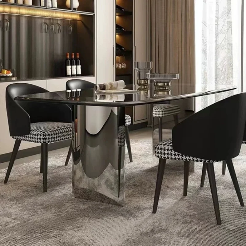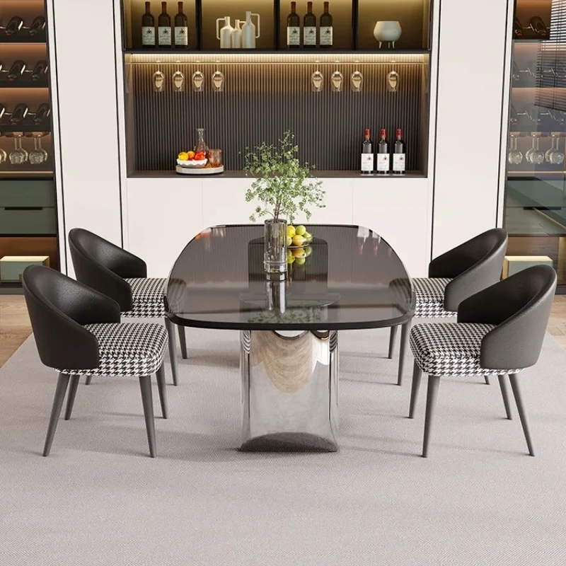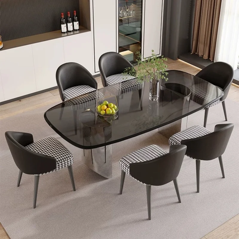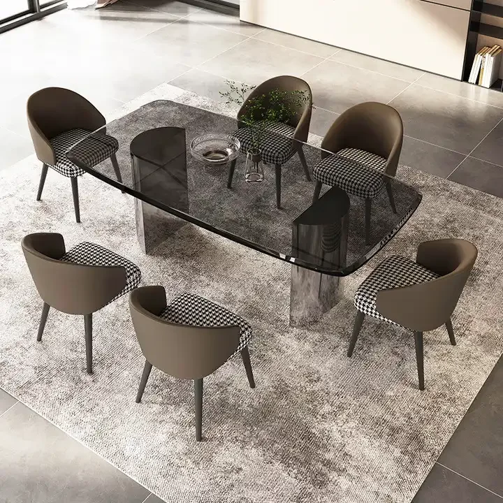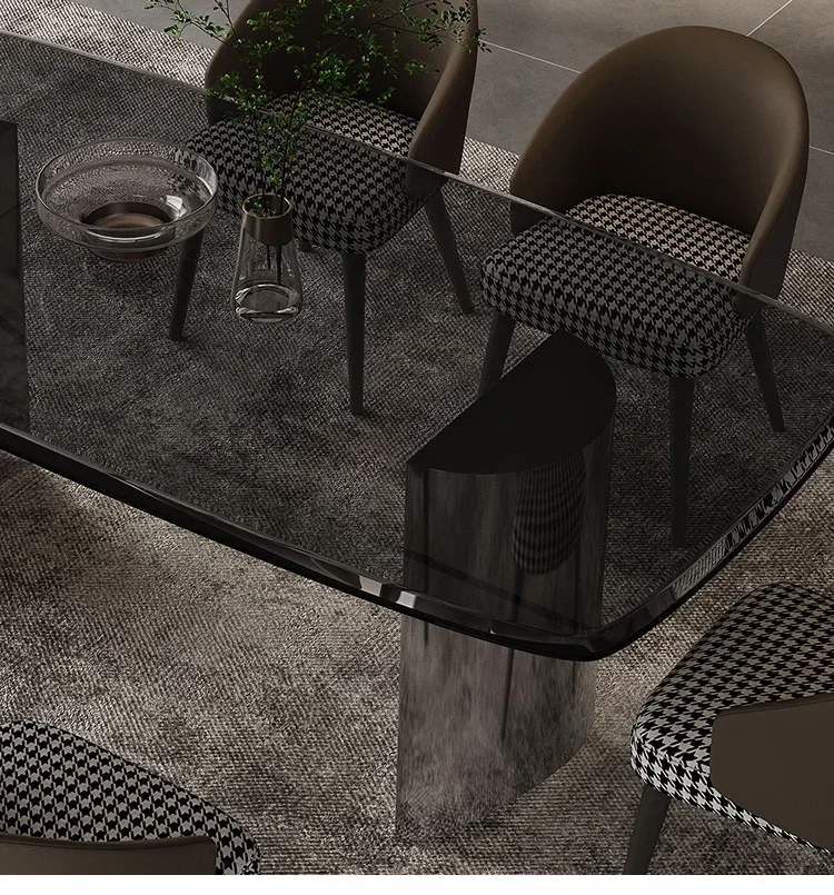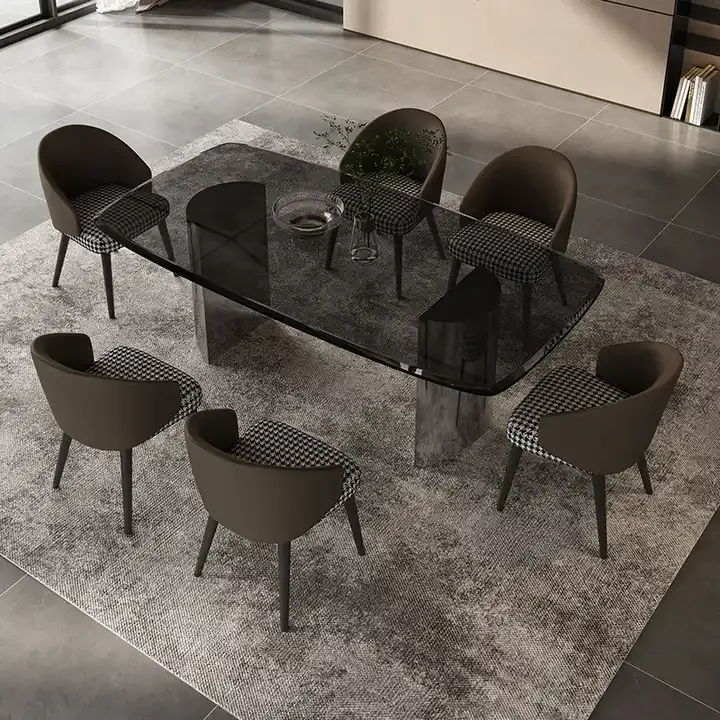 Product Name | Modern Transparent Black Glass Dinning Table Set For 6 Minimalist Home Furniture Stainless Steel Base Restaurant Dining Table |