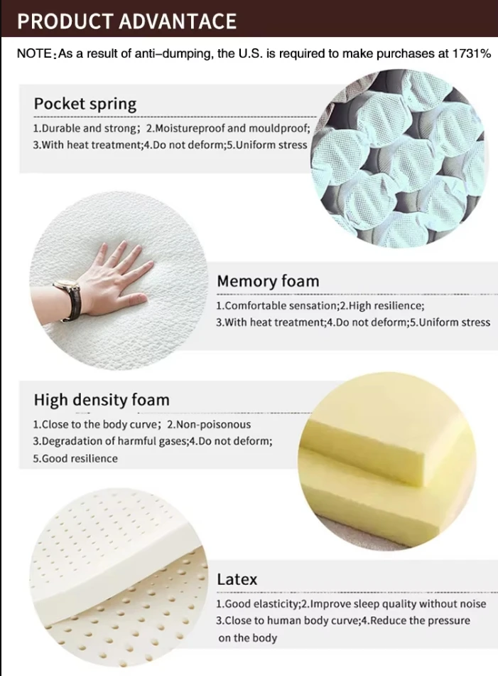 Main Materials | Memory Foam, Pocket Spring ,Bonnell Spring , Premium Knitted Fabric | Modes of packing | Packed in four cartons |