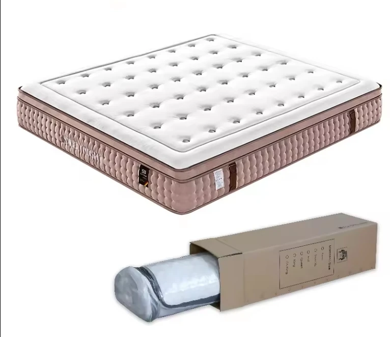 OEM roll up pocket pillow top luxury hotel king queen size bed latex memory foam spring mattress in a box