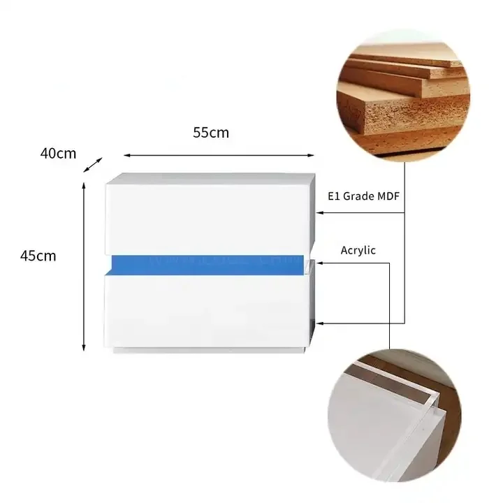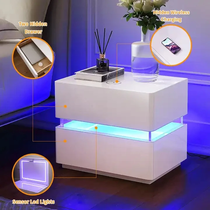 Product Name: | Wireless Charging Hotel Acrylic Wooden White Modern Led Smart Night Stand Bedside Table Nightstand | ||||||