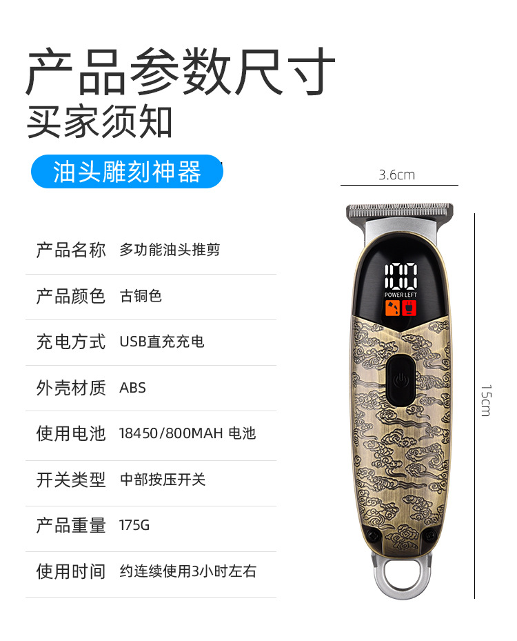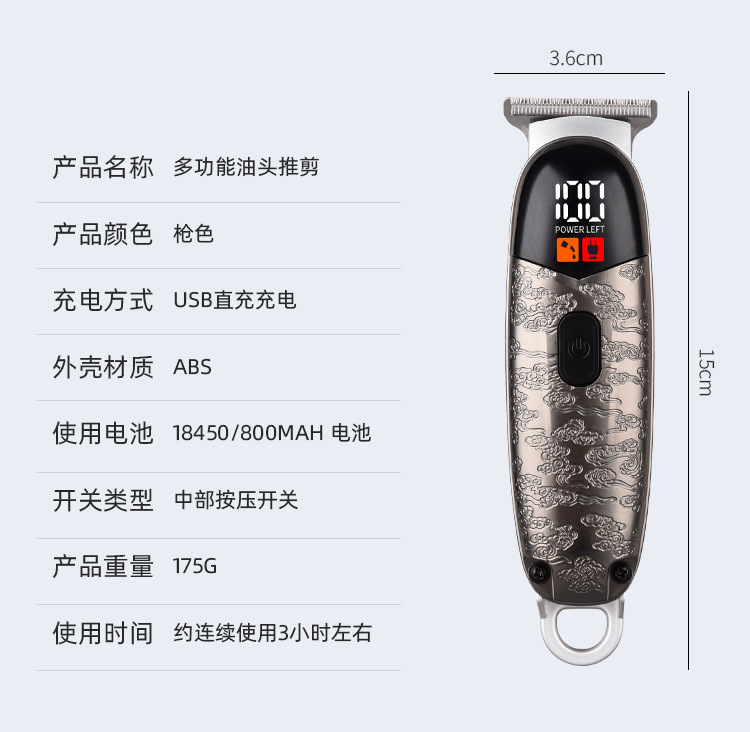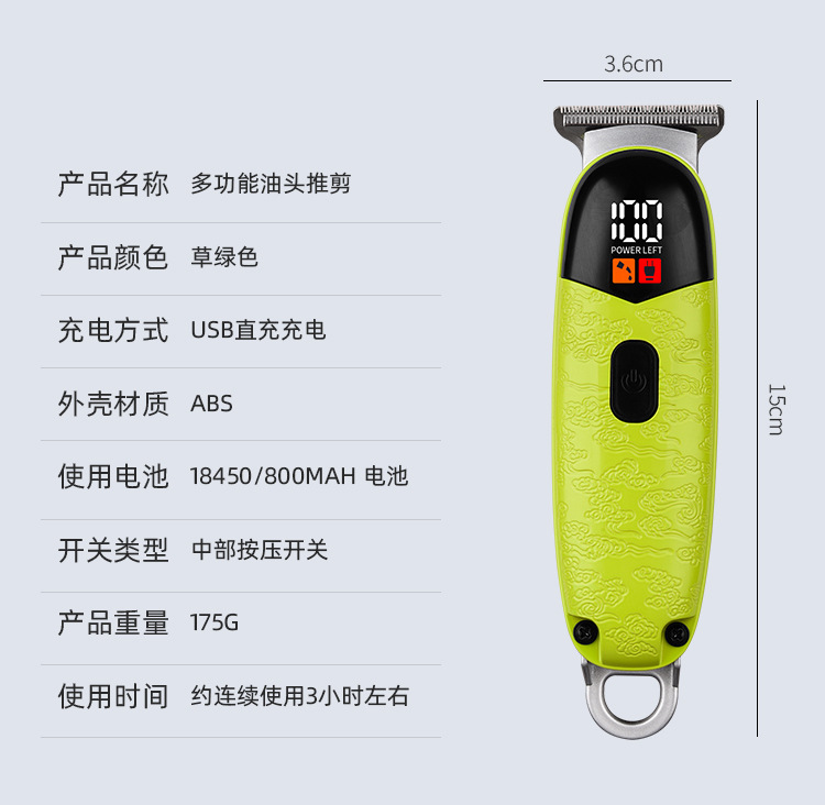 cross-border electric multi-functional hair clipper cutter head washable oil head bald head artifact mini 330