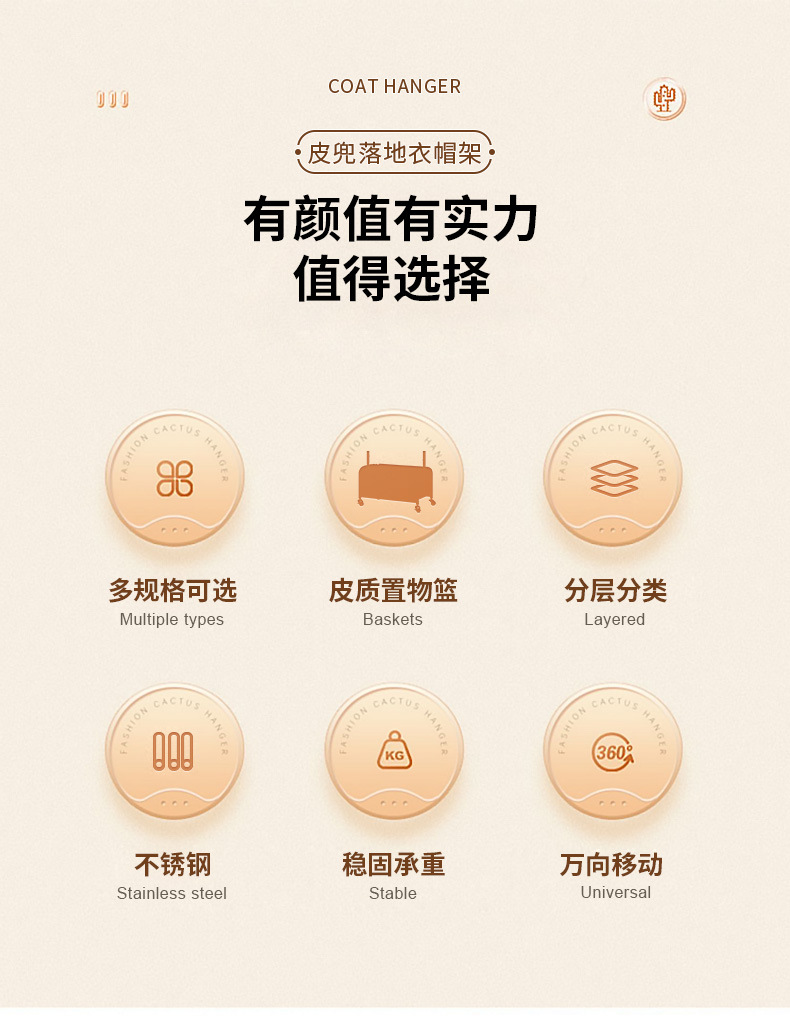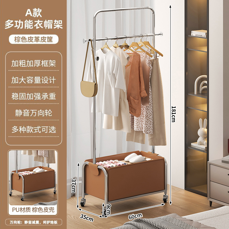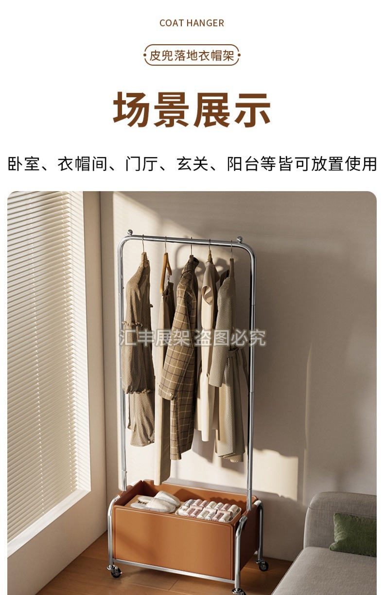 [h 80 long] stainless steel rod + brown leather pocket