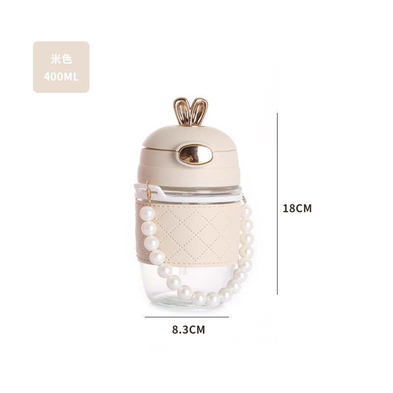 douyin online influencer adorable rabbit straw glass cup cute cartoon girl portable cup office coffee beverage water cup