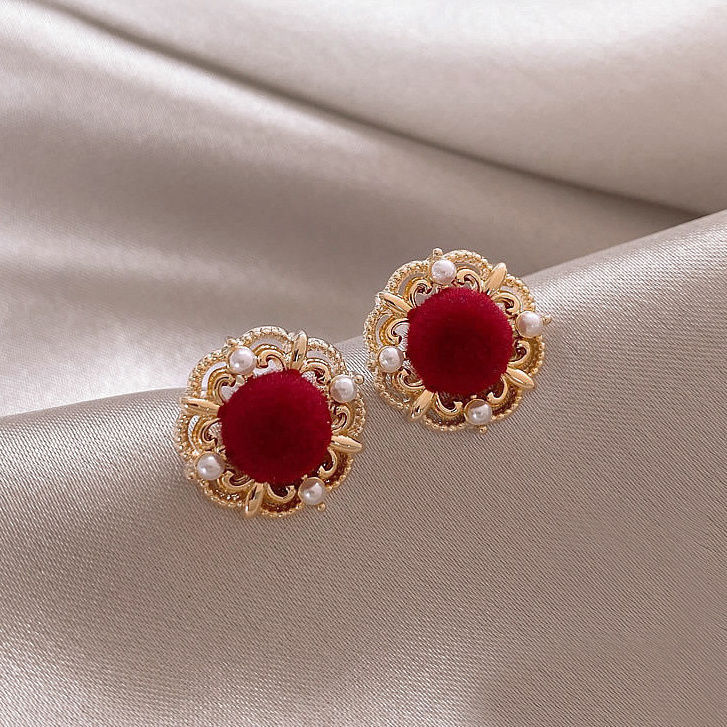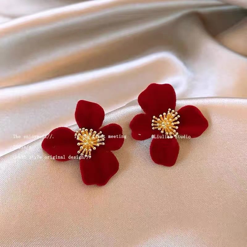 red velvet flower stud earrings