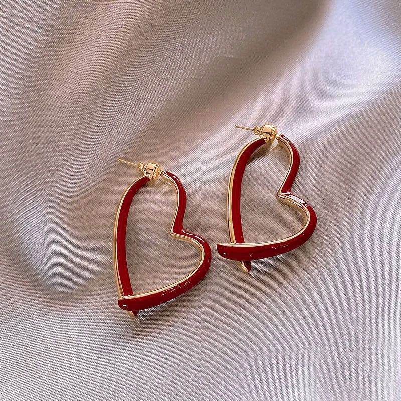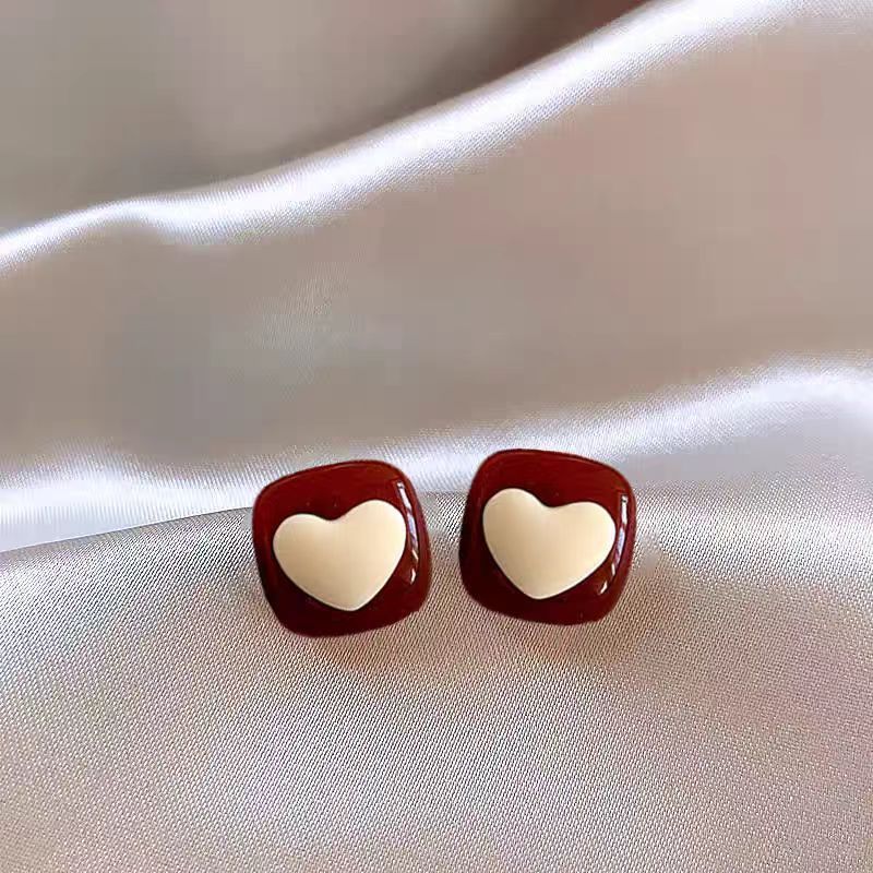 red heart-shaped ear studs