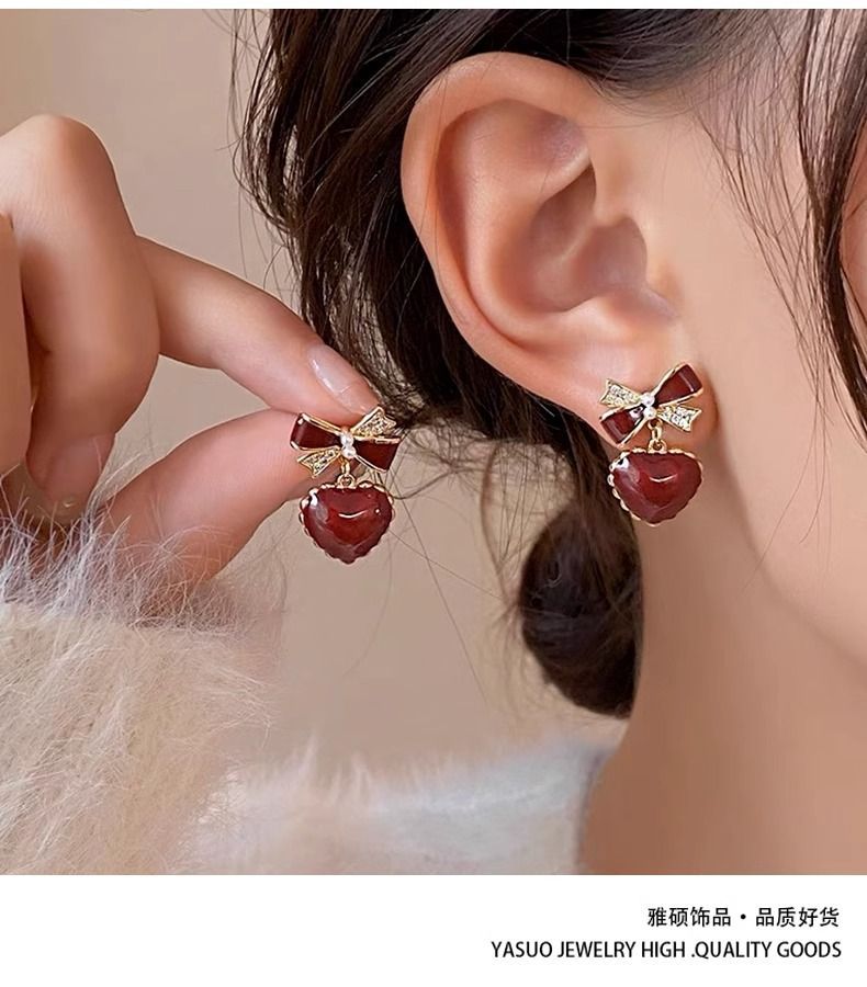 wine red love ear clip